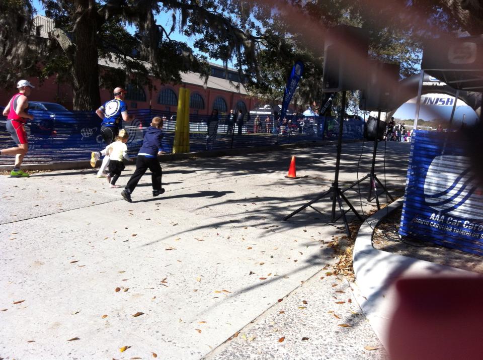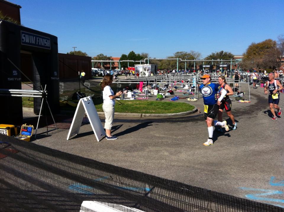 Warm down: Kids finished the last 50m of the run with me which is always great. Ate a bagel, banana, a recovery bar, and a bunch of water. I went into the pool and took a shower, then cleaned up transition and got my bike. Me and Melissa talked about the race and people watched while the kids played in the field. What limited your ability to perform faster: Choice of clothing, dropping my water bottle, and running the disc. Overall, my goal was 1:05 or better based on last years results to place in the military division. When I got a 1:04 report from the wife I was ecstatic. I felt amazingly strong at the finish and had made my goal time. I walked by the award table and saw the most amazing 18" tall eagle holding an american flag trophy for the top 3 military finishers and got giddy but my dreams were crushed when I found out 3rd place was 1:02 and 4th place was 1:02:30. Event comments: This was a great race, we did not have the pool issues that many people had described in the past. I loved racing as the US Navy on Marine Corps base. The trophies for the military division are unparalleled. This is a fantastic event and a must do for military personnel. I'll be back next year! Last updated: 2013-03-16 12:00 AM