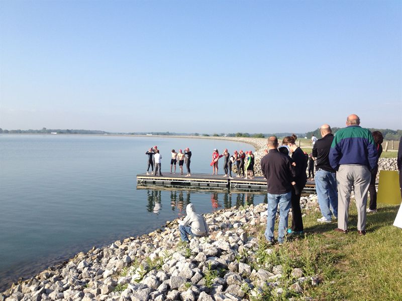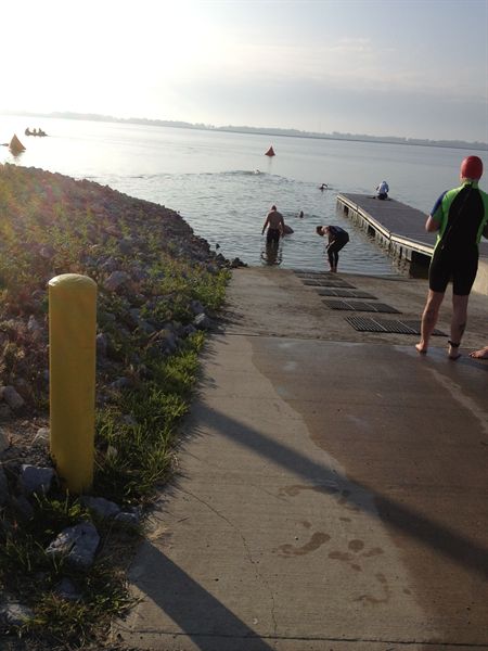 Set up equip and stress out while stretching. Got in the water for a quick swim 5 min before start.
