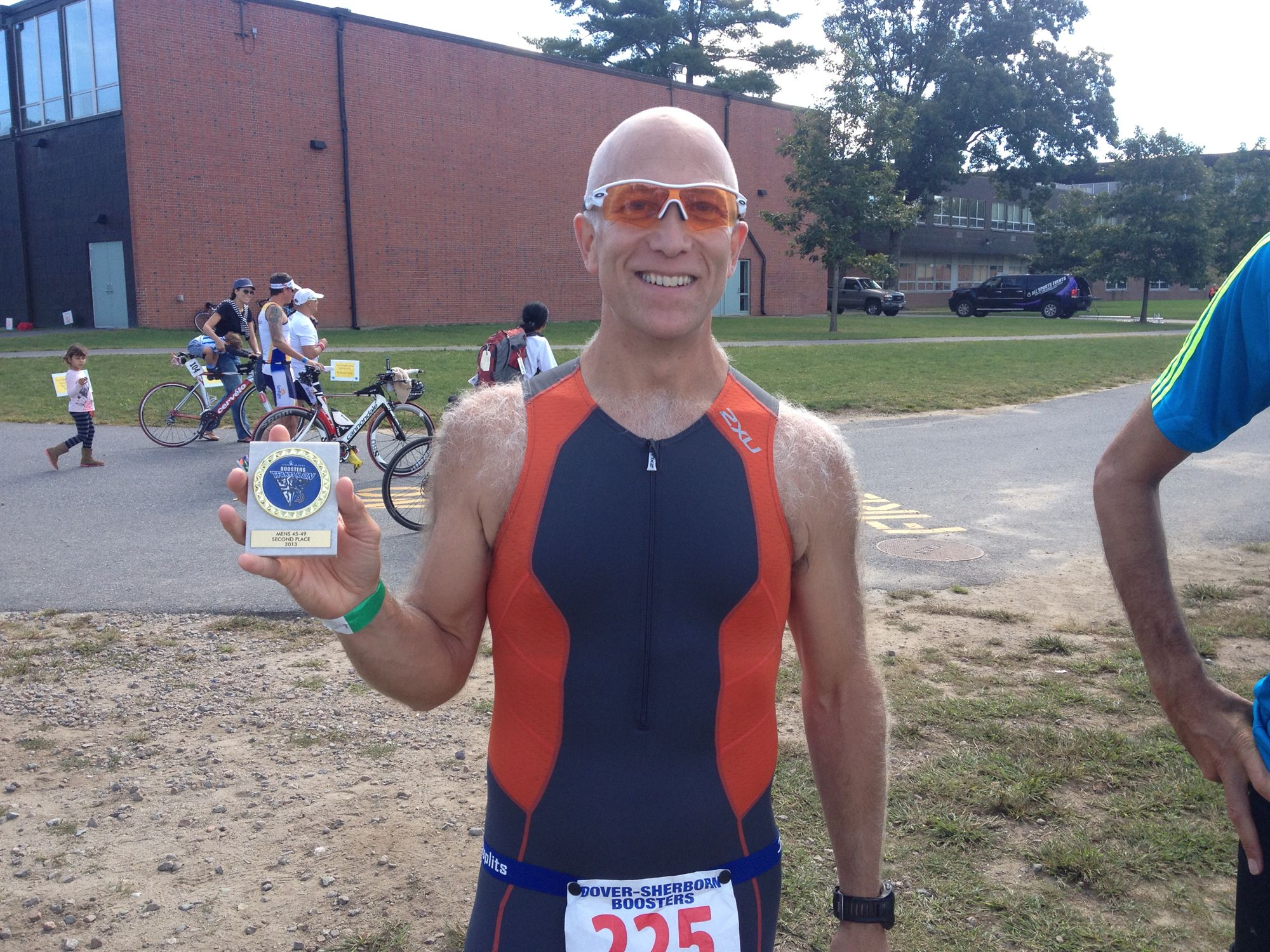 Warm down: My favorite part of the race! Saw a bunch of friends and their families. Hung out in the sun. ATE BACON. Cheered at the awards (another one where I was "first" by virtue of the other guy in my AG bagging an overall podium - but I'll take it). :) The top 6 finishers were in my AG. All 6 of them (two were pro/elites, 4 were AGers). WTF? Some fast, paunchy, balding guys 'round these parts, I guess. Best. Midlife. Crisis... Ever. :) What limited your ability to perform faster: Hamstring strain. Not training/peaking/tapering for this, as it was an end of season fun race. Probably didn't matter much, as the base was there from the main season... Event comments: I love this race. So scenic. Good cause. Lots of friends. Great breakfast buffet after (did I mention the BACON?). Nice challenge with the hills, but not crushingly so. All in, a great venue/race for a local deal. All that's missing is a beer truck to celebrate the end of the season! Last updated: 2013-09-16 12:00 AM