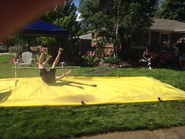 Comments: What an amazing day. The BolderBoulder must be experienced. The atmosphere is almost beyond description. DH calls it a party with a race thrown in. That's a pretty good description. The city of Boulder really rallies around this race and the course is lined by volunteers and spectators. Along the course there are several bands scheduled to play but there are probably an equal number of garage bands playing in front yards along the way. Other people stand in their yards with hoses, spraying the runners, while others feed the running masses anything from cupcakes to tater tots (more on that later). This race is so. much. fun. SIL did much better this year than the last two. We walked less. We partook in the sprinkers/hoses along the way and DS2 even took the time to enjoy the slip n' slides. We were probably at about Mile 3 when we passed a man who was yelling, and then throwing, tater tots. Well he tossed one right at me. Now I had a decision to make. I could be "that person" and let it drop or toss it away, or I could enjoy the atmosphere and the spontinaity and eat the tater tot. So I caught it and popped it in my mouth, which both surprised and humored DS2. I don't think he thought his ultra conservative mother was capable of taking food from a stranger amidst this party atmosphere. Of course, we discussed the fact that if I start to act odd in the next quarter mile or so then DS2, a pre-med major, and SIL, an RN, should take evasive action and save me. :) As we approched the finish SIL spoke of her dread for the last hill. I continued to encourage her and wouldn't "let" her walk. I kept her going until the crowd slowed us, *&^% crowd! Then we entered the stadium and made our grand finishers lap! What would you do differently?: Absolutely nothing. We had an amazing time!!!!!!!!! ![]() Post race