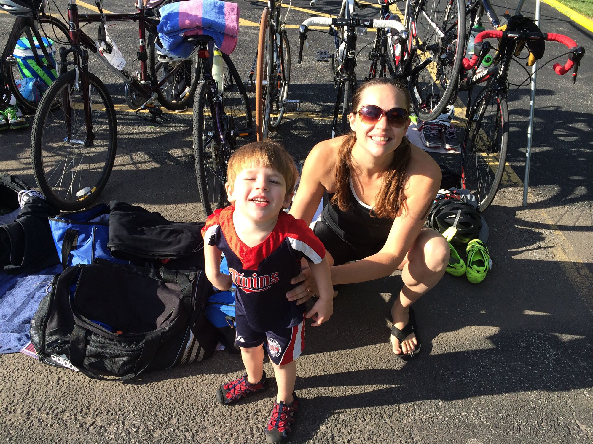 Up at 0610. Dressed, had coffee and cereal (out of toast). Drove to site and set up transition, got chip and marked. Attended first-timers meeting at 0730, checked out beginning of run course (drove bike yesterday), and hydrated. 0830 was mandatory pre-race meeting, then we self-seeded for swim.