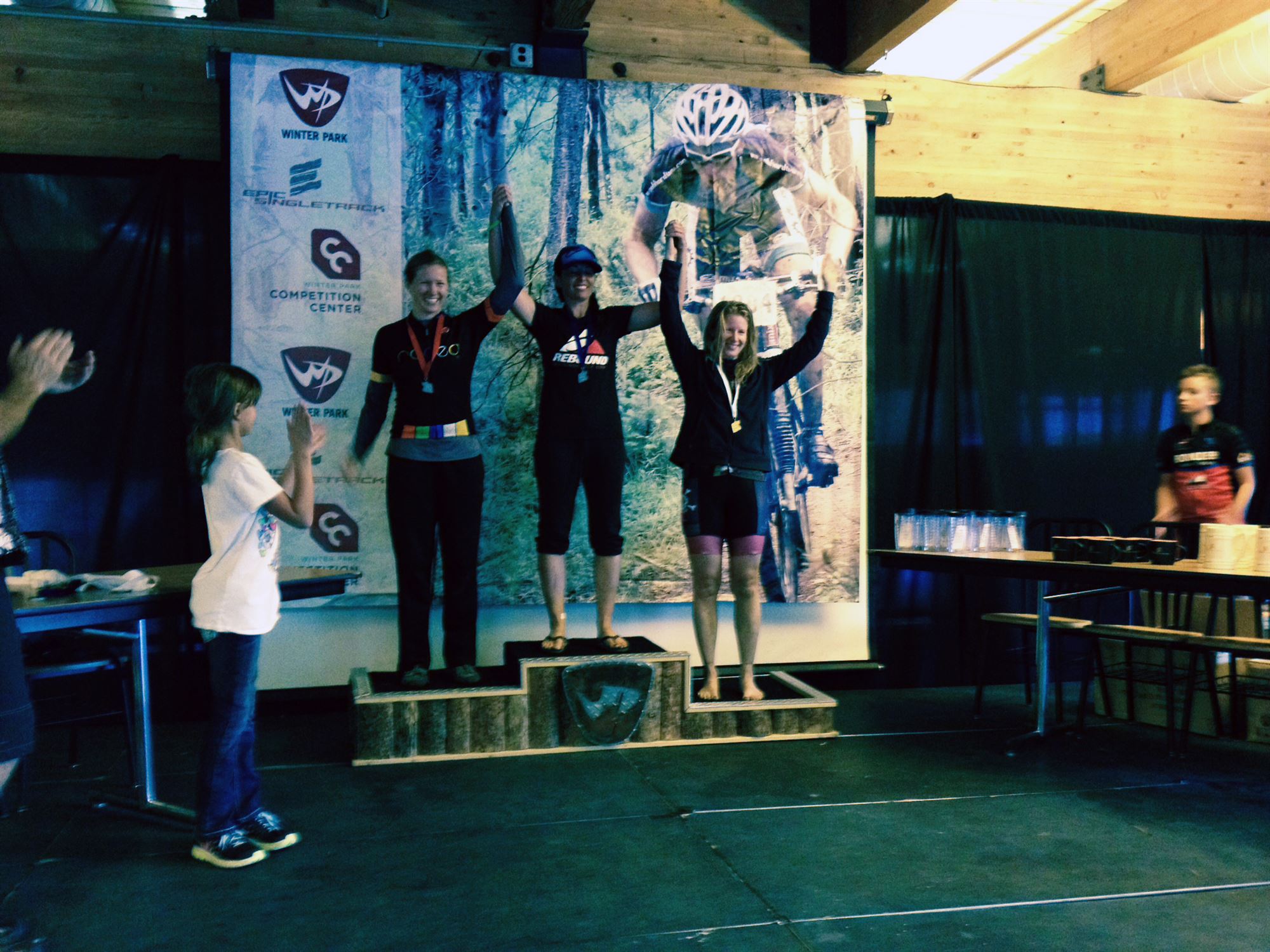Warm down: I was looking forward to a shower and the hot tub, but saw that I got 3rd place when I got to the finish, so I stuck around a bit for the podium ceremony. My MIL and Aspen had come to find me at the finish, and I figured Aspen would think it was cool to see her mom get a medal, and she did (my kids keep telling everyone I “won” my race because I got a medal, lol). I was freezing though – forgot to leave a change of clothes and shoes at the finish line, and had to stand there in my soaking wet kit the whole time. When it was over, went and took the best shower EVER and then sat in the hot tub with Aspen for a long time. What limited your ability to perform faster: Mostly the weather. I never ride in wet conditions on the front range (the trails can't take it!), so I was out of my element. Also definitely got fatigued the last 10 miles - I'm sure that would have been a bit better if I had gotten in more long rides in the past couple of months. My endurance wasn't quite where it needed to be. Event comments: GREAT RACE! I will definitely do this again, and if I have a better schedule next summer, I'll try to do more of the series. This race course was great - good mix of climbing and fast sections, smooth stuff and techy stuff. There was a little bit of everything. Epic Singletrack does a really good job with the series. There were volunteers sitting out in the rain the entire time, pointing the way at almost every turn. Most of the people who turn out to race these are way more hardcore than me, but everyone was still really friendly, and I felt like it made me stretch myself. Last updated: 2014-08-25 12:00 AM