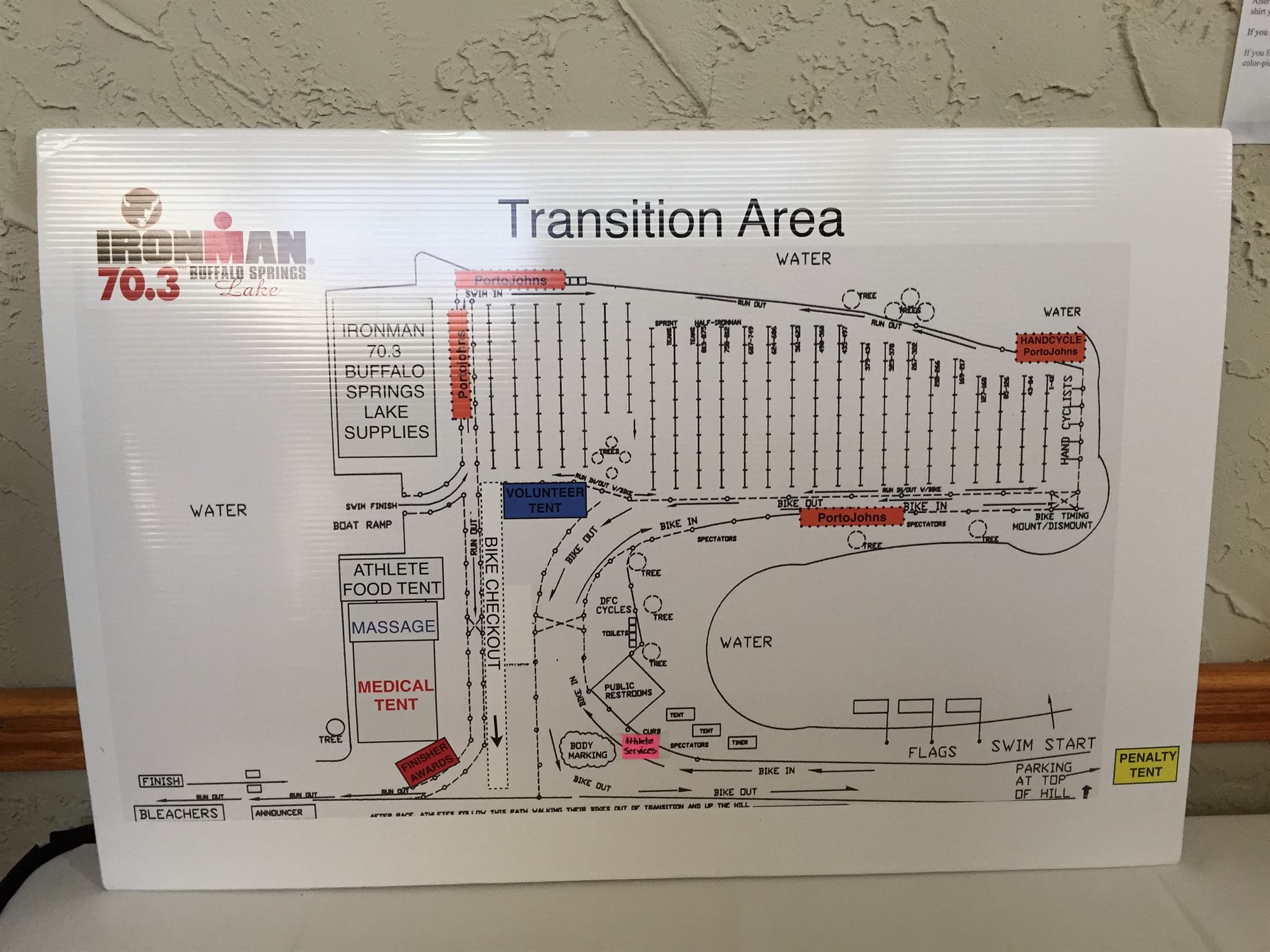 I woke up early and ate a big breakfast in my hotel room. Muffins, fruit, oatmeal, ClifBar, etc. Had everything packed and in the truck except my clothes and shoes. Drove, parked, unloaded, and headed to T area. It was early and not much of a line for body marking. Set up my stuff. I left my shoes off my bike because the mount area looked really short and narrow before you started a climb with a left turn. After asking my neighbor he agreed and said no one does a flying mount here and everyone wears their shoes from T1 to mount. He also pointed out how rough the asphalt was, he was correct! I ate some crackers and drank water while I waited. Probably peed 5-6 during the 1.5 hour wait to start. I was a little worried!