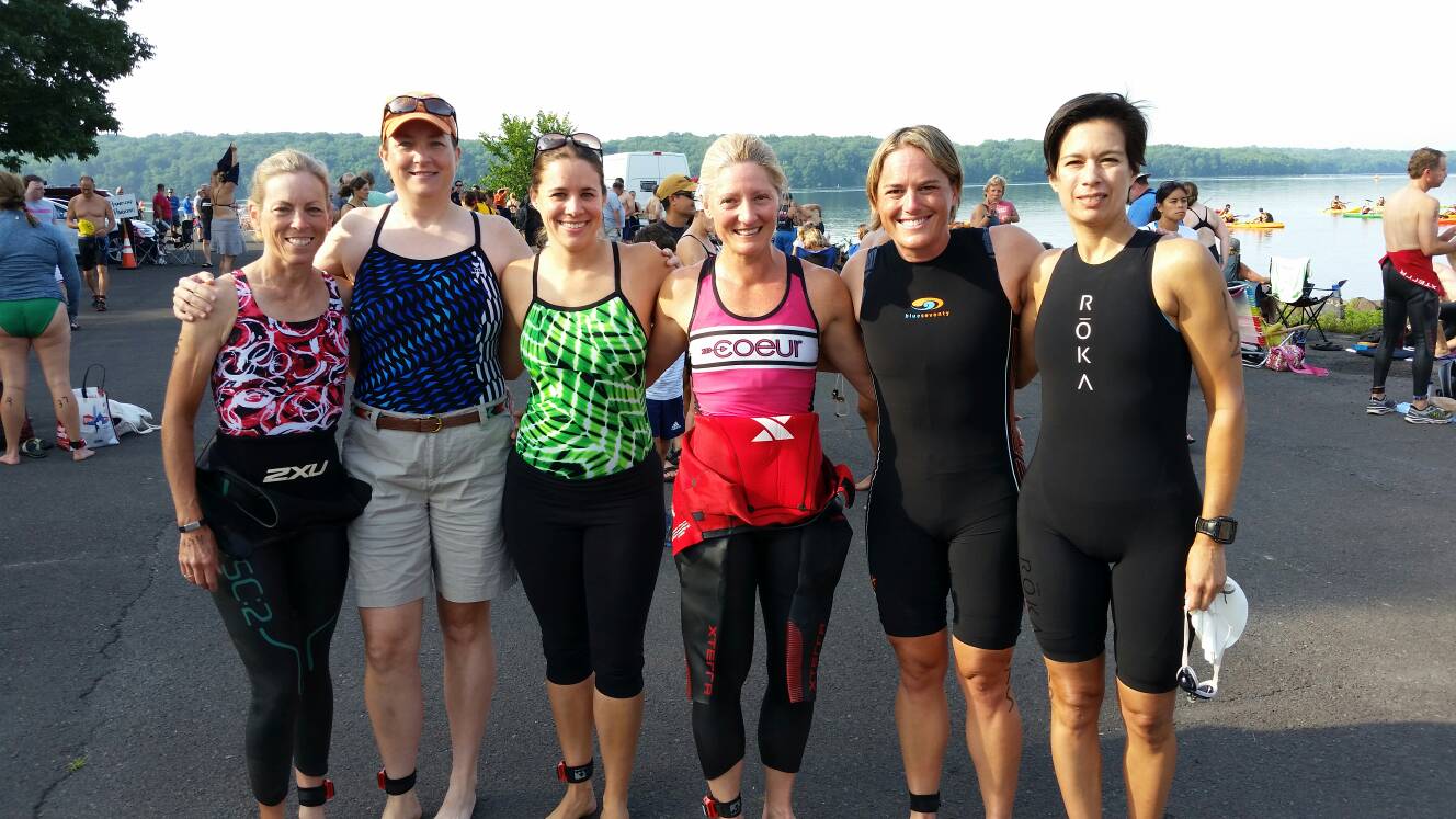 Ate some Stinger chews, drank some water, then had a gel. I didn't do a swim warm-up, or even much of a dry land warm-up, just chatted nervously with my friends and did some more people watching. :) Quite a few interesting characters!