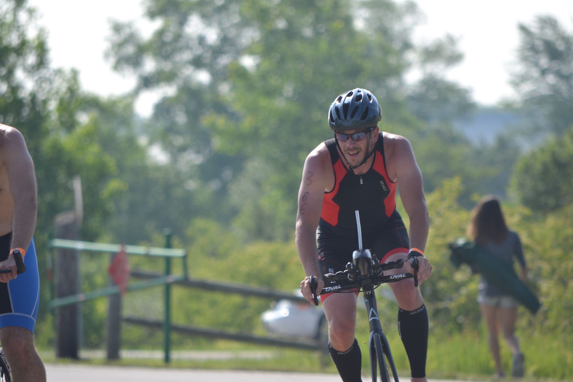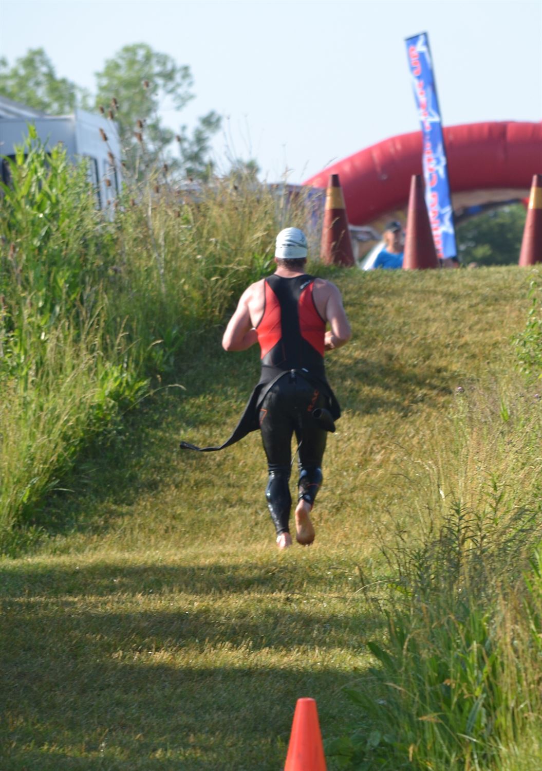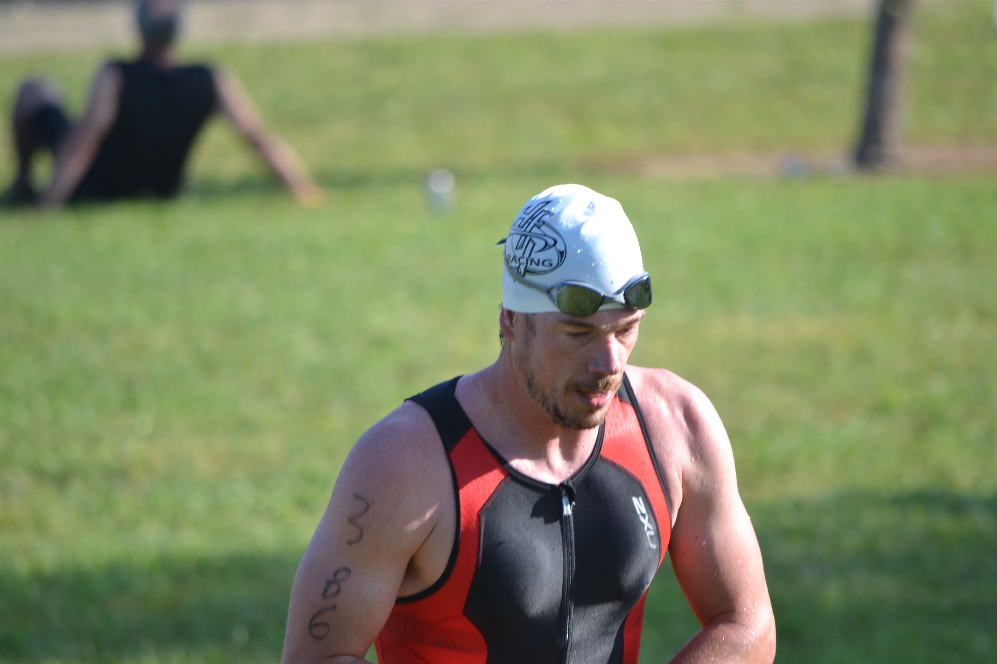I had made it to packet pick up on Saturday so race morning went very smooth. I was able to take my time getting everything set up and even made sure I had the transition spot I wanted. I then went for a short jog, where I quickly felt the stiffness of not running for 7 days and then maybe 30 minutes before swim start I went for maybe a 300 yard swim.