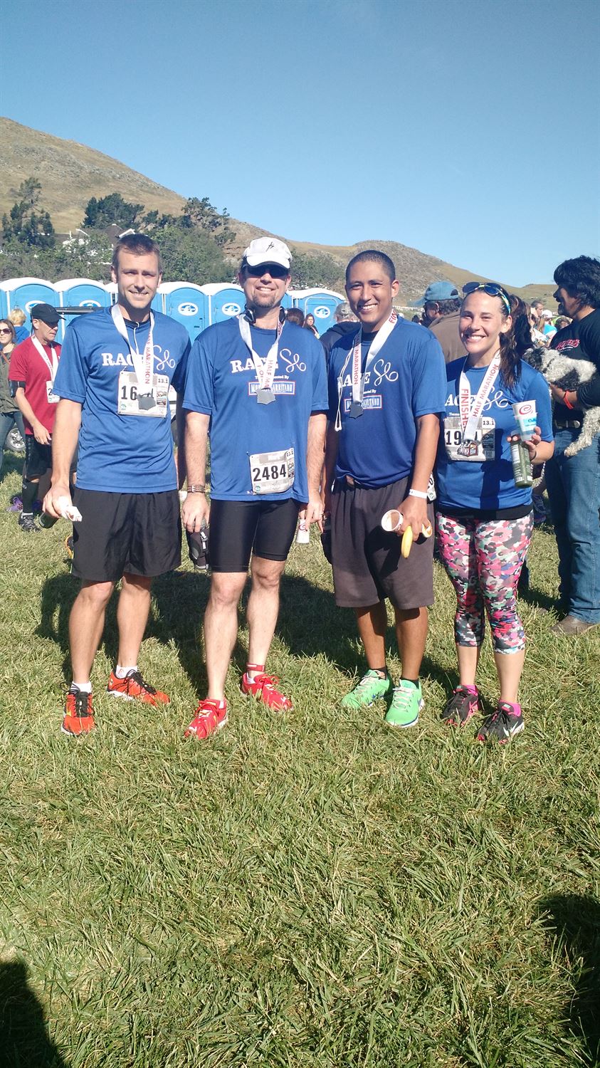 Comments: The first mile is a gentle, almost imperceptible, downhill grade which feels fast as the course heads into the quaint downtown area of San Luis Obispo (aka "SLO"): past the historic Fremont theater, Spanish mission (with bells ringing to celebrate the runners) and down the tree lined main street. A few brave souls were on the streets cheering us on with coffee and signs in hand. At the edge of the downtown district the route turned around and the aforementioned grade was now ever so slightly uphill, slowing my pace just a touch. As the route exited downtown we passed the Chinese garden and fountain with a troupe of drummers and Tiger dancers. Knowing what was coming next this was a nice boost. Next up was the first major hill and the start of the hilly section of the course. While not a huge hill in comparison with other runs, "Johnson hill" is the longest hill within city limits and has a reputation among local runners. I try to run it a couple times a week so I know how to pace it and breezed right up without trouble. We made our way to the city limits and past a crowd of spectators, it's amazing how a bit of cheering helps motivation! More rolling hills (not quite as green as last year due to lack of rain) were coming and I was feeling so good that when I hit mile 6 I could hardly believe that had gone 6 miles. The only thing slowing me down was the nagging soreness of my foot. After a turn around at about mile 7 it was back up and down the hills and to the city limits. The same crowd was still cheering and motivating as we ran past. With the hills behind me a spectator holding a sign that said "Just remember where you started!" was a great motivator. The last 3 miles of the route were through a quiet neighborhood with a few more spectators out now that it was a little later in the morning. A group of my friends were among them and I got a "baby high-five" from a running buddy's daughter. The last mile of every HM I've ran is when I start to feel it the distance and this was no different. Knowing the race is almost over help me push through the soreness in my right foot and the small hot spot on my left foot that felt like a pebble. With just a 1/4 of a mile to the finish there is a small but steep rise that slows a lot of runners to a walk but I kept myself running and crested the hill. The run down to the finish was lined with cheering spectators and I finished as strong as I could. What would you do differently?: Not much, good run overall considering my foot issues. ![]() Post race