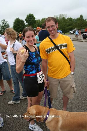 Warm down: did a little stretching, but not enough. Enjoyed some cold water (and gave some to the dog- she drank out of a paper cup- too cute) and had an apple. BF and I hung out a little and listed to the AG winners' times, then headed home. What limited your ability to perform faster: not sighting enough on the swim, not enough hill training on the bike Event comments: Overall, a good race. Had a fun time! Last updated: 2006-08-14 12:00 AM