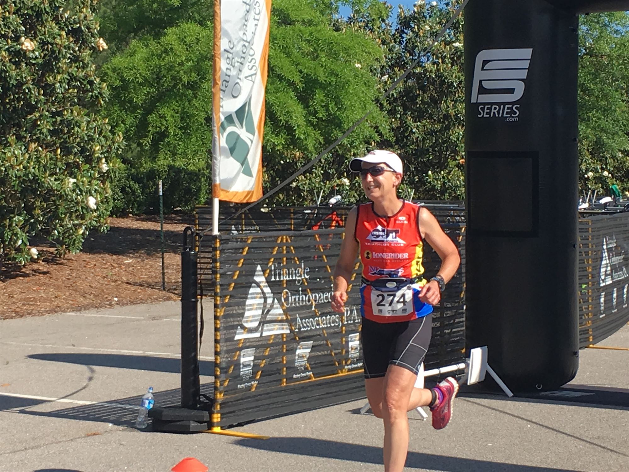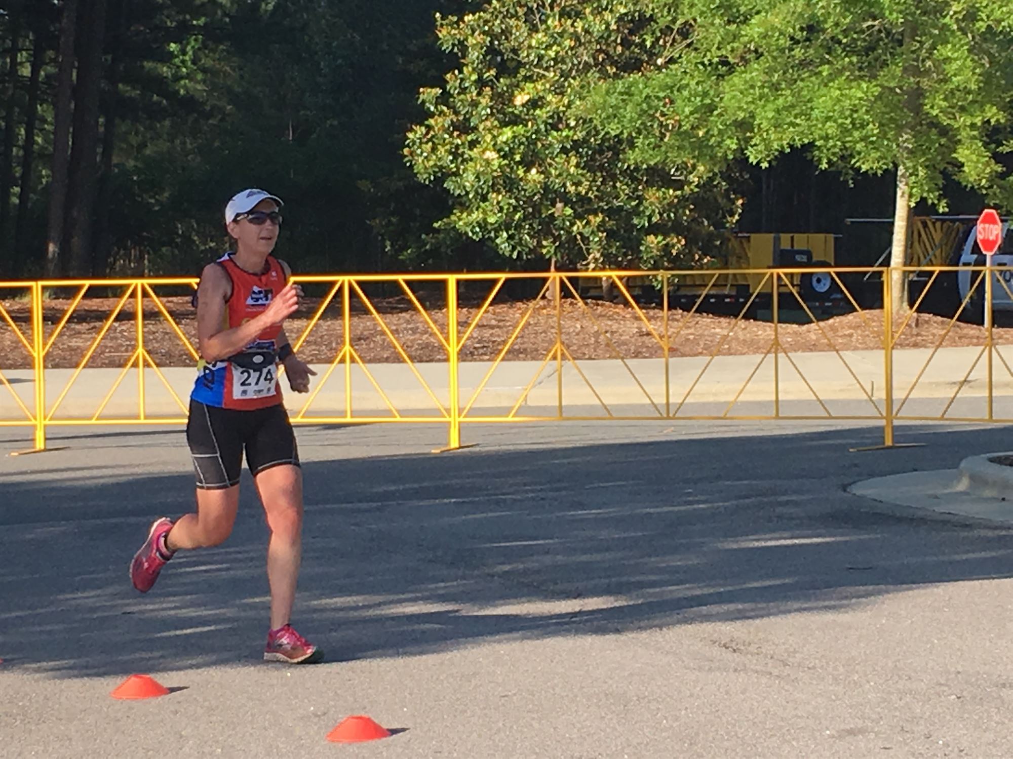 Comments: By now it was in the 70s and a good bit of the run course was in full sun. I was hot. I needed a porta-let but didn't want to stop. I just kept moving as best as I could. I wish the legs had been faster but overall, I'm pleased with the effort. During the second run I encountered some cars on the cross roads on Southbridge Greenway and I kind of wish that there had been a volunteer or signage on these roads. One car stopped and the other one we had a standoff -- both of us paused and then I went when he waved. ![]() Post race