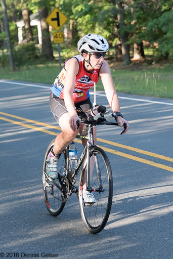 Comments: I was concerned about the bike leg in the time leading up to this event. I have not had a lot of time on my bike this year due to marathon training and I don't feel like I have a lot of speed in my legs since the marathon less than a month ago. I pre-rode it the weekend before the race and I am glad that I did. There were two places on the course (one we passed twice) that I needed to pay close attention to my shifting. Overall, I'm pleased with how the ride went. I was faster than I expected to be (granted, there was really no wind to speak of). I was upset that in the last quarter of the bike course there were three other women near me. They were not riding in a non-drafting spacing. If I passed one, I had to pass all there and then the three of them would pass me back. I'd drop back and repeat. They finally dropped me with about three miles to go. I was very annoyed, especially since one of them was in my age group. That being said, a lot of drafting penalties were issued in this event -- 14 penalties in 234 finishers. ![]() Transition 2