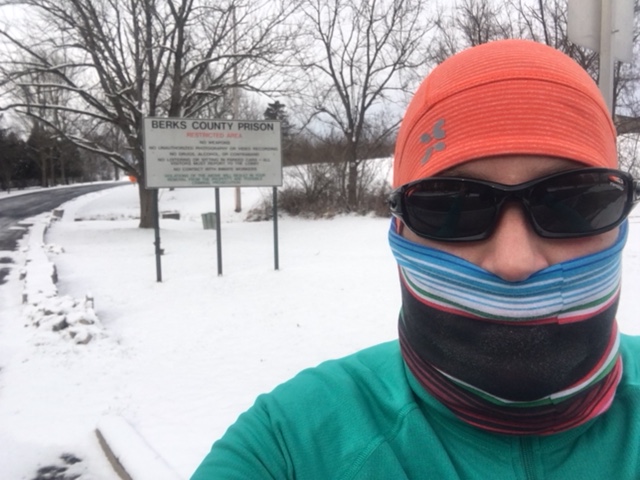 Comments: Race started off on dirt/rock driveway, then headed out to a road. There were a few icy patches as we had snow the day before and have been in a very deep freeze for over a week but there were plenty of volunteers around warning us of conditions. Quickly we came to the first hill at which point many people started walking. I was determined to keep at least 'running' so I did which was faster than a walk. We stayed on the macadam road for maybe a mile, then turned onto the first of two off road trails, the Union Canal Path. As we came down a hill on the macadam road to make the sharp right onto the trail, a volunteer was standing there warning us of slippery conditions in the turn. "No one fell here yet, you don't want to be the first!" Point taken and heeded, thanks! This trail seemed to be crushed gravel but it was hard to tell because of the few inches of snow on top. Thankfully I wore my trail shoes since LT warned me a good portion of the race was off road. They had decent grip everywhere but the occasional icy patches that peeked through here and there. This section of the course was absolutely beautiful! The path wound around next to a creek and on the other side of the trail were at least one lock remaining from the old canal days, cool! I love stuff like that. The snow made everything so much prettier. I saw a great blue heron and some variety of hawk, heard quite a few songbirds chirping and chattering. So how is the actual race going, you may wonder? I was picking off a few people here and there, playing cat and mouse with a few others who were run/walking, and once in a while getting passed. By this point I was mainly overtaking people who opted to walk or were moving just a bit slower than I. Eventually we crossed another 'real' road (again, complete with volunteers warning of icy spots) then moved onto part of the Blue Marsh trail system and also out into a very exposed field, BRRRR! Up on top of the hill and into the open field meant no shelter from the wind. I closed my 1/4 zip shirt just a bit more. This trail I believe was more of a dirt and rock trail, more natural. Such pretty views! After spending some time on these trails, we were back out onto asphalt roads to get back to the finish, running past the Berks County Prison and related facilities. Makes for an interesting race atmosphere! You couldn't see the prison from the road, just the signs. After a bit I saw LT running back toward me doing her warm-down. She did a u-turn to run with me to the finish. We eventually saw her friend G doing the same thing and she joined us as well. As we turned onto the rocky driveway, I found a little kick to be able to pass at least one guy, maybe another person or so to get in to the finish. Considering the conditions and my lack of run training, I was OK enough with my time. No chip timing, so my actual time is :40 off what my start line to finish line would be. What would you do differently?: Don't slack off on my run training, some of which isn't my fault as I was sick in Dec. for a couple weeks. ![]() Post race