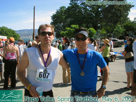 Warm down: Running around looking for the wife and kids. A little stretching. What limited your ability to perform faster: Poor OWS skills (esp. coping with winds and chop) and inexperience. Event comments: For a first time, or just a good time, this Napa Valley Sprint is just the ticket. It's pretty low key, and everyone is nice and friendly. Last updated: 2006-08-31 12:00 AM