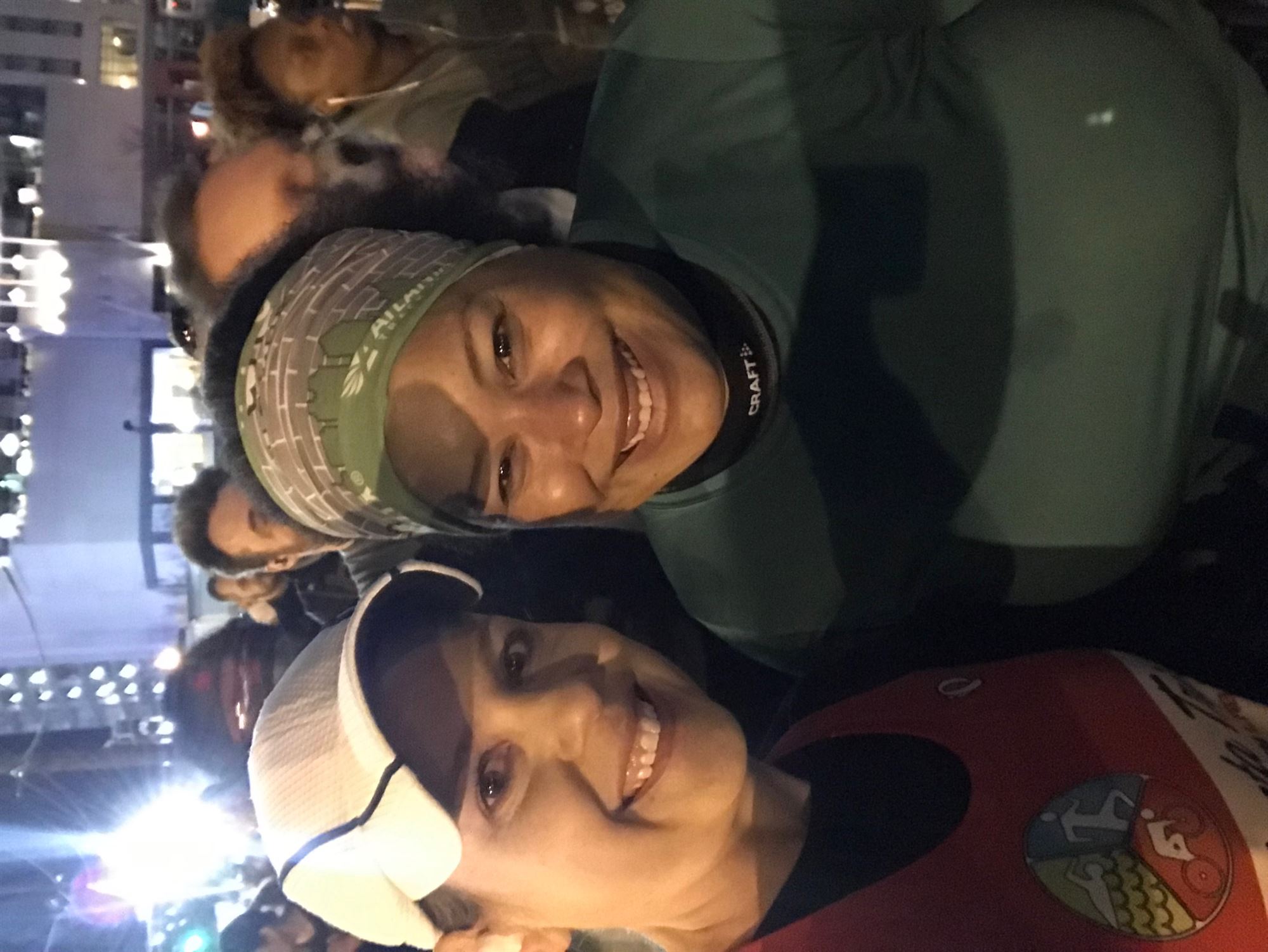 Comments: Still dark when we crossed the starting line and did I mention it was COLD? Last year I wore a tank top at this race, and today I was in my warmest fleece lined leggings, a winter base long sleeved top under my ATC singlet and my winter gloves. I certainly learned my lesson at the Hot Chocolate race, LOL! Starting off I felt OK. Not good or great, just OK. I enjoy the buzz and crowds in big races, so I soaked it in. After the first few miles, I noticed my left IT Band talking to me. It's happened on long training runs, but never became a thing. It was a thing today. Most of the miles ticked off really slowly and really tediously. I just couldn't get in a groove or get to feeling "good" whatsoever. Both of my IT Bands were cranky, my right knee was hurting and my feet were very uncomfortable. And I had to pee like a racehorse. The first 3-4 port a potty opportunities had lines of 20+ people so I didn't want to wait. Finally around mile 7, I think, there were only 5-6 people in line so I stopped. That helped. At mile 9, we went through beautiful Peidmont Park and I took my gloves off to take a photo on my phone. I put them in my pants to see if I could run without them but nope, hands were so cold still, so I put the gloves back on. The last four miles are basically all uphill, so I ended up walking big chunks. I hate doing that, but between my cranky legs and feet and the elevation I just resigned to it. It was just hill after hill after hill after hill. Welcome to Atlanta. Finally hit mile 12 and I pepped up a little. I saw my buddy Michele and caught up to her. She was walking and I was feeling better, so I just patted her back and told her she was doing great as I passed. I ran almost all of the last mile, and seeing a small group of tri club people cheering right before the finish chute made me tear up a little. They were so encouraging and they knew who I was, I heard them yell my name. Right then, I was just so glad to be a part of this tri club and have people out there cheering for me - even in a race that was not my best. I actually started crying in the finish chute and my nose was dripping like crazy, so I'm sure my photos are lovely haha! Glad to stop running, but man that last mile might have been the one I felt the best in. What would you do differently?: Nothing, not sure. I trained really well for this race and had great long runs. I probably need to start foam rolling more. ![]() Post race