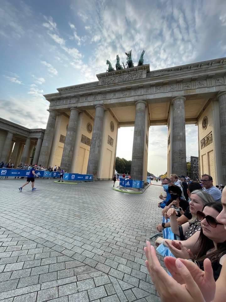 Comments: We traveled to Germany several days before the race because I wanted time to acclimate. This wasn't worth doing, because I never really did. I would have rather saved the PTO days and stayed longer or saved them for another trip. Oh well. I went into the race feeling NOT sprightly or prepared. As the race got closer the weather forecast became worse and worse. Normally the weather is 60s and overcast. And that was, in fact, the weather nearly every other day. Except marathon day, of course! My race would start at 10:30 so I left the AirBnb at 8, giving myself a good hour for transit (unnecessary) and enough time before the race to use the potty and chillax. This was WAY too early and I was ready and waiting in the corral by 9:30. The course itself was SO BORING. Just lots of wide streets between apartment buildings, shops, etc. Ok crowds most of the way and the water stops were fine. I had my own gels and just used the water to top my bottle, plus I carried baggie of a european brand of electrolyte tablets. I also had a few bananas along the way. I do not think they had any sports drinks or gels aside from one or two stops. That would have been really bad... I also put a cup of water on my head every stop. This helped a lot! About halfway (2:30ish for my half split) I started to feel like this was going REALLY bad. I went to a potty and spent too much time in there. I did this a couple more times, even though I didn't need to go as bad as I felt. After this was a series of walks and very slow jogs. Around 20 my left toe nail started to hurt, so I tried to adjust my sock. I think it was just banging the nail and I will find out for sure later! Also several parts of my butt and legs hurt, despite TWO aleves. Oy. The whole thing dragged me down to an extremly slow second half - 3:15ish. Yikes. After I had abandoned sub-5, I thought 5:15 for sure and told this to Bob. I wish! I lost at least 10 minutes in the potties plus SO.MUCH.SLOGGING. I did see a lot of folks getting pulled, passing out or groggy on the sidelines. Lots of incredible cramps and one woman who yelled that she couldn't feel her legs. So, obviously it was a tough day. Bob said he saw ambulances coming and going all day. He rode along to several points on the course. Around mile 24.5 we got back to the city center and the neat buildings, plus slightly bigger crowds - although being in the back it was still sparse. After you run through the Brandenburg Gate there is another 100 yards or so (?) of running to the finish line. It seems so cruel! I felt a lot less dead compared to marathons 1 and 2, so that's good I guess. I finished around 4:00. I am not a fan of the late race. Split Time Of Day Time Diff min/km km/h 5 km 11:13:23 00:34:50 34:50 06:58 8.61 10 km 11:48:32 01:09:59 35:09 07:02 8.53 15 km 12:25:14 01:46:42 36:43 07:21 8.17 20 km 13:00:55 02:22:23 35:41 07:09 8.41 Half 13:09:13 02:30:40 08:17 07:33 7.94 25 km 13:40:42 03:02:09 31:29 08:05 7.44 30 km 14:27:06 03:48:34 46:25 09:17 6.46 35 km 15:16:30 04:37:58 49:24 09:53 6.07 40 km 16:04:37 05:26:05 48:07 09:38 6.23 Finish 16:24:00 05:45:27 19:22 08:50 6.80 What would you do differently?: Stop signing up for marathon lotteries. Appropriately adjust my expectations for a travel marathon. ![]() Post race