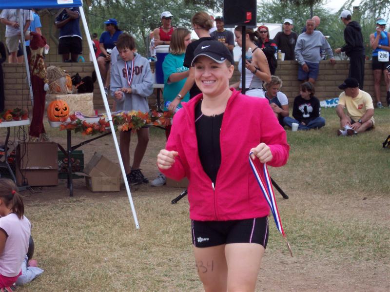 Warm down: Walked a bit, then walked right over to the snack table and had myself a big ol' chocolate cake doughnut! I love doughnuts! I figured if there was ever a day where I could eat a doughnut, it should be the day that I just burned over 700 calories doing a Tri!!!! I deserved that freaken doughnut!!! What limited your ability to perform faster: Only getting 5 hours of sleep did not help. Event comments: WOOOO HOOOO!! Can you believe it? I got 3rd in my age division!!!! Rib finally started to let me hear it after the race. I will ice it a lot to day, and start backing off the mega doses of Advil. Next race PHX New Times 10k??? Next Tri on Thanksgiving morning???? We'll see. Last updated: 2006-10-16 12:00 AM