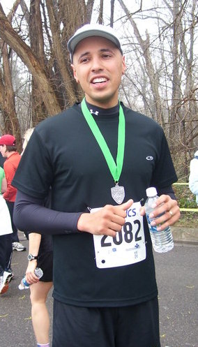 Comments: I felt really good starting off but I was holding back trying to pace myself. I fell in with a group that was running my pace. At the 4 mile mark I had to use the bathroom really bad so I stopped off and used it (too much water I guess). Of course my pacers were too far ahead to catch up with so I just paced myself from there. I stopped at every other aid station to get some Ultima, GU or water. As soon as I was done drinking, I started running again. At about the 10 mile mark I felt myself slowing. I walked for about 20 seconds before feeling an imaginary foot kicking me in the butt. I had to tell myself not to stop and to keep moving forward. During the 20 second walk a speed walker passed me up. I thought to myself WTF, I can't let a speed walker beat me! I ran (yes ran) behind the walker for 2 miles until I saw the 12 mile marker at which point I said, "F^$% that!!! Speed walking guy is not beathing me!!!" I turned on the juice and sped up by about 0.25 miles per hour and passed him and just kept going. A little after I turned on the juice another aid station came up and they offered me water, and boy did I want it, but I said that I couldn't stop or I might not be able to start running again. My legs were killing me. I had to tell myself that I tell my legs what to do, they don't tell me what to do. With finish line in sight I thought I would sprint to the finish. After about 10 seconds of sprinting, I realized that I wasn't sprinting at all and that my pace hadn't changed at all. I still kept Moving my arms and legs, willing myself to keep running and crossed the finish line. What would you do differently?: Hmmm... I don't know... get in more long runs as practice I guess because right now my body is spent and I can't move. ![]() Post race