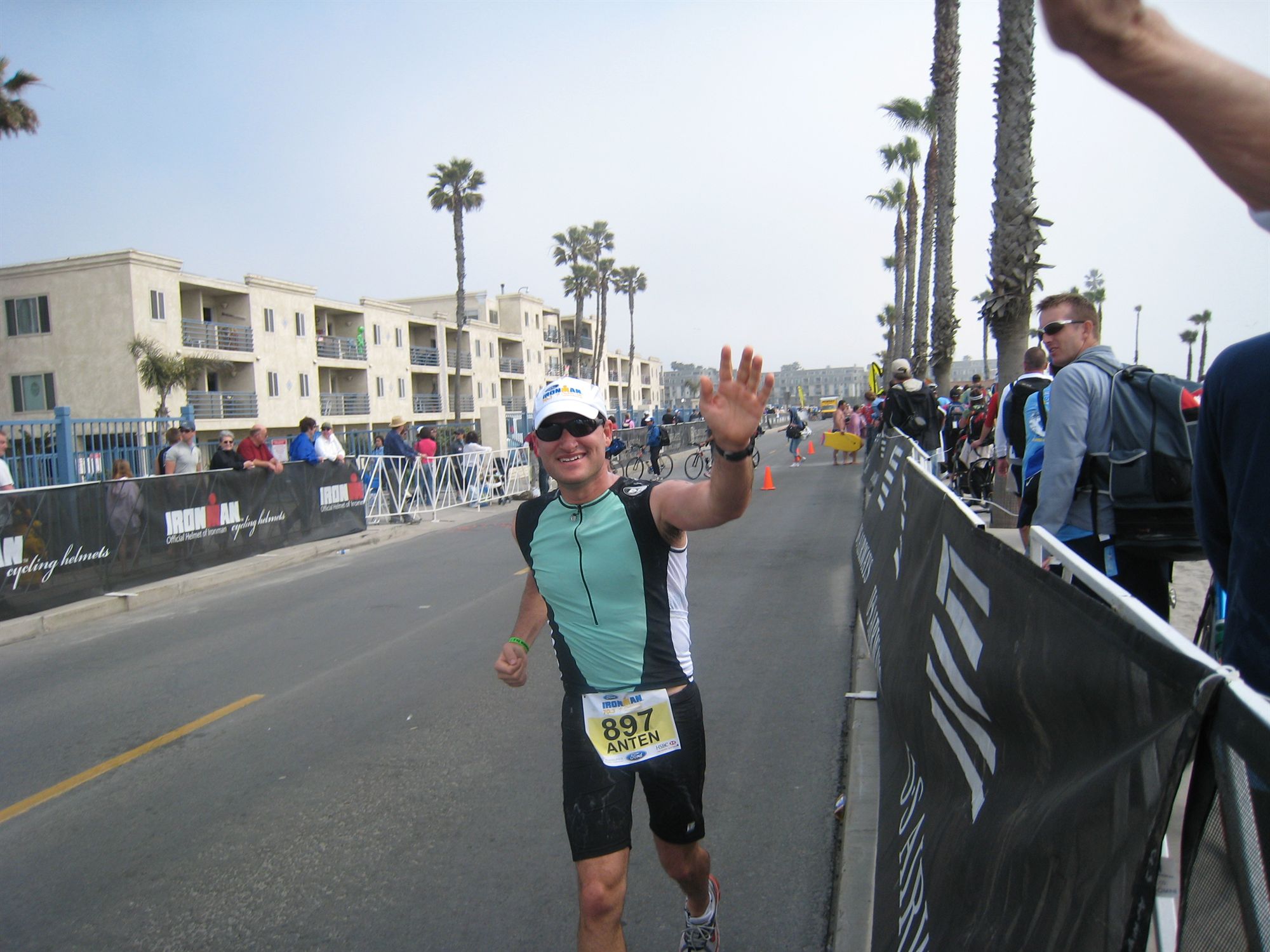 Comments: Ah, the end of my world as I know it. I was doing great for the first 28 miles. Was on a 3:20 pace or so. I was smiling and laughing. I was even wondering why everyone was in such a damn hurry. I wanted to enjoy the day. It isn't very often that you get to bike along the ocean on a perfect morning with the streets closed. Then there was 'the hill'. I could see it as I was approaching. Do we really have to go up that thing? Isn't there another way around it?! Struggled big time on that first hill. Had to walk for a couple of minutes which didn't seem to hurt me too badly since the speeds were so slow. But I was spent after that. I got passed by EVERYBODY on the bike leg. The entire field it seemed. I just stayed in the right lane and went at my own pace. What would you do differently?: My bike skills are pathetic. I should have done many more long rides. I have never even gone 56 miles before the race. Sad. It not only killed me on the bike portion but it would hurt me on the run since I was so spent. And I started wondering why I subjected myself to this. My coach told me I would go through this state. I didn't believe him, but sure enough, the thought was there. ![]() Transition 2