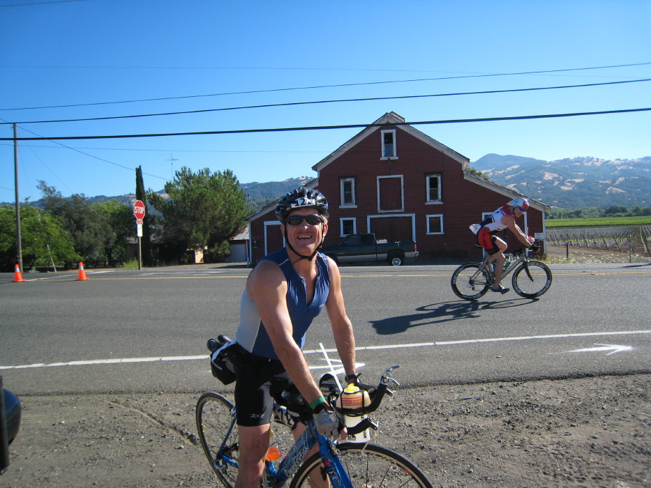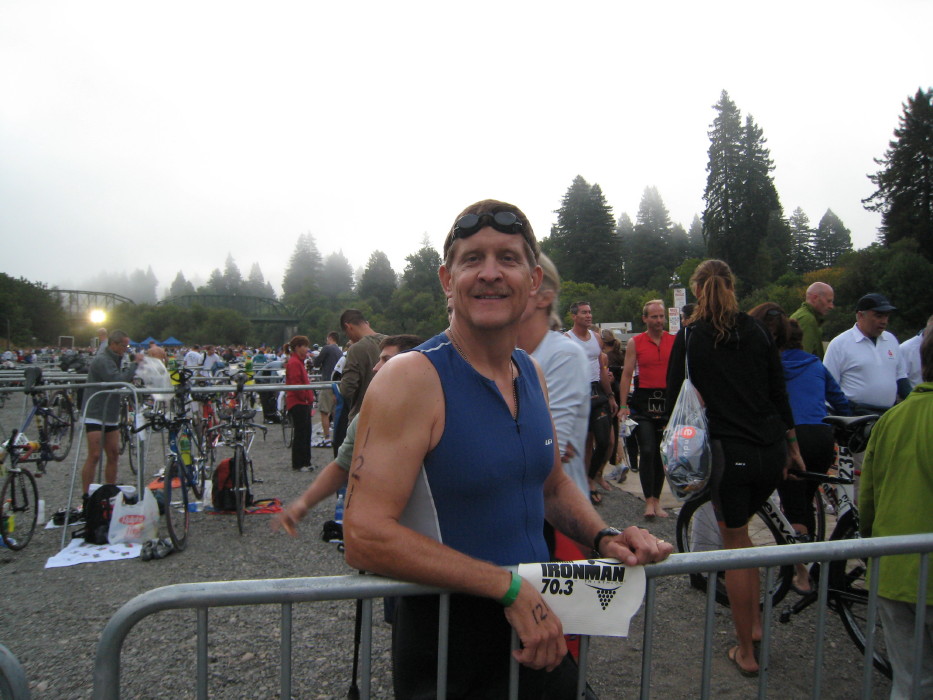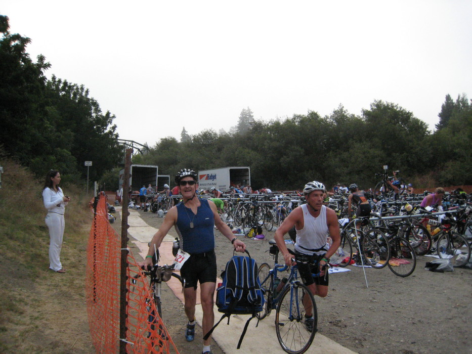 We stayed in Guerneville, at a little place called "Dawns Ranch Lodge". Booked it sight unseen, and we were just a little bit apprehensive, based on some of the comments about Guerneville. We were pleasantly suprised, the place was clean, rustic but cute, and literally filled with triathletes. In fact, we had a great conversation with Chris Lieto and his buddy at dinner - Chris went on to finish 4th in the pro division.