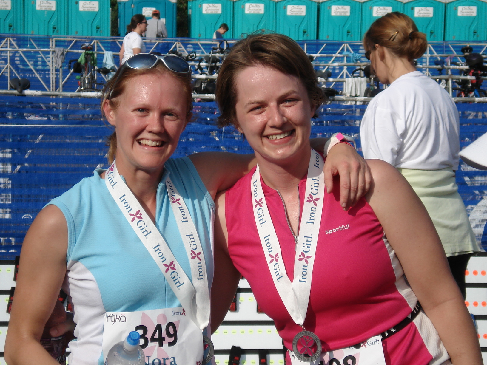 Comments: I was starting to get warmer and my only goal was to keep running. Other than a quick slow down at the water stop, I did that. I was passed like crazy and wondered why these women had so much energy left! I held off Nora until the last mile when she finally caught and passed me. She was in the wave 3 min behind me to start and was looking awesome - she did great. Last year: 21:56 a 2:30 improvement! What would you do differently?: Keep working on the bricks and overall improved fitness would never hurt. ![]() Post race