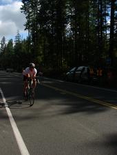 Comments: It was cold the first 20 minutes. Once my clothes driep I was fine. I settled into my HR zone after about 30 minutes, I was worried early as I was hovering around 145 and knew this was way to high. Once I settled in around 125 I felt real good. HR hit 155 or so on some hills and got as low as 105 on some down hills. At 15 minutes I started my nutrition plan. Gatorade Endurance every 15 minutes for a total of 24 ounces per hour, gels every 20 minutes (hammer gel out of flask) and sip water out of aero bottle. Since it was cool I was not sweating much at all and the fluid started to take its toll at about mile 25. I HAD to pee. When I came to the porta potty it was occupied so I just rode by. I wanted to stop drinking but since GE was a large part of my plan I had to keep putting it in. There came a point I finally decided I was just going to let it fly on the bike. Not that I am that hardcore but I HAD TO GO, so bad that getting aero put to much pressure on my bladder so I had to stay on the hoods. Well, on a sustained down hill I stood and was going to let it fly... no can do. I suppose this is something one has to practice. I managed to make it though, and other than have to go REALLY BAD this was a great ride. I never felt uncomfortable and was surprised I just spent 3+ hours on the bike- time flew by. What would you do differently?: PEE!!!  Transition 2