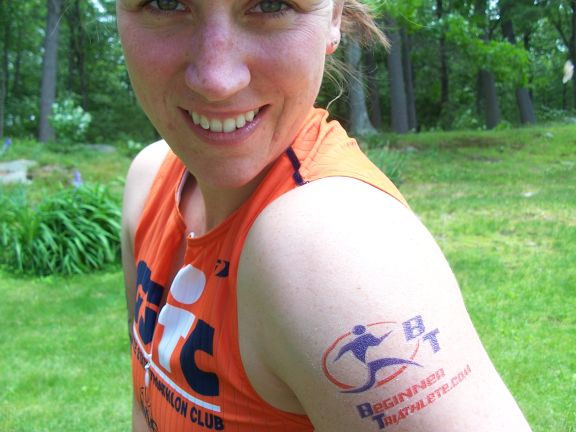 Comments: Felt so much better than last year. Legs were rough for the first 1/4 mile - had the numb toes thing again (from Mooseman). So odd! Breathing too quickly at first, then finally relaxed into a rhythm. Didn't walk at all, even up the steep trail hills, so I was proud of myself. Really wanted some salty stuff, but all they had was water out on the course - need to remember an Endurolyte for the end of the bike sessions. What would you do differently?: Practice trail running (have another Sprint like this in early September). Hydrate more (but this would have been avoided if I hadn't dropped the bike bottle). ![]() Post race