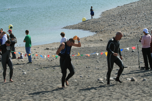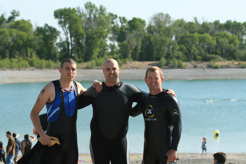 Not much, the swim would get me going. Double checked everything and felt the very cold water. Helped Jeff and Ryan with their first time and gave them some tips.
