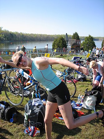 Warm down: Walked around - felt a little lightheaded and like I'd throw up if I drank any more Accelerade. So I drank Gatorade and water... Got my legs into the lake water to cool off. Walked around more, after I was cooled down I sat. Ate a banana when we finally found them. Felt like I couldn't eat anything, my stomach was not happy. But I felt ok - just really tired. What limited your ability to perform faster: Lack of calories during the run segment. Also lack of full training program. Event comments: Note: "Overall" ranks are just women - they don't post the overall results for both men/women together. Last updated: 2007-04-23 12:00 AM