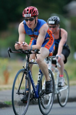 Warm down: I jogged a little, stretched on the grass, and drank about 4 Jamba Juices. The post-race food here was excellent. I had a 10-mile ride back home too. What limited your ability to perform faster: Crowdedness in the swim, and my usual lazy approach to transitions. However, it was a PR by about 4 minutes. In my current age group, it looks like 3rd place was 2 minutes faster than me, so next year I'll have to make sure I work on killing the swim and transitions. Event comments: I'm impressed that they put on a race this big in such a small venue, but I don't think they should start the race at 7:00 am. They only needed to close 6 miles of (lightly traveled) road, and even the slowest people were done with the bike before 9:00. Why such a rush? Last updated: 2007-04-26 12:00 AM