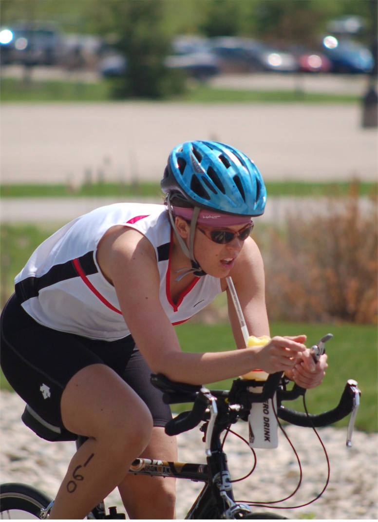 Comments: I believe the time was included in the bike time. Transition was ok. I had to push a spectator out of the way. I felt bad and was hoping Travis didn't see. Well, he did... and took a picture of it. Proof that I am a wee bit competitive. Got to my bike. Used the guys next to me towel cause I forgot mine. Sorry dude. Putting on my helmet, crap it broke. So I was able to make it look like it was functional and I was outta there. What would you do differently?: Not break my helmet, and push the guy alittle harder. Looking at the picture, doesn't look like much of a push. ![]() Bike