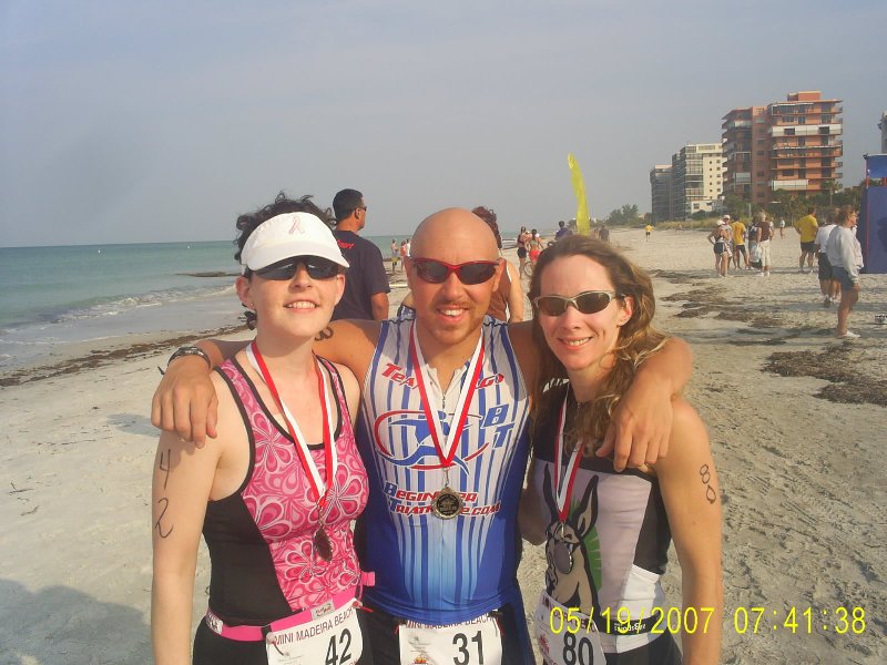 Warm down: Drank some water and waited for Trixie to come in. Saw a friend of mine there from Orlando and chatted. Walked down to watch Terri finish. Cheered her to the finish line. Took some pictures. Fun times!! What limited your ability to perform faster: Sand maybe? My helmet? Event comments: This was a lot of fun. OK, so I just did an Ironman and my next race was a supersprint, but that's ok...it was my first supersprint! I gotta tell ya...these things are hard. You go balls-to-the-wall for 100% of the race, no break, no breathing time, nothing. Just 110% effort from start to finish. It was so much fun though. Last updated: 2007-05-21 12:00 AM