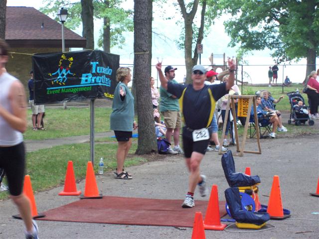 Warm down: Walking around for a few minutes, and ate some pasta/liquids. Once I got home, I spent about an hour in the hot tub. What limited your ability to perform faster: 4 main issues: Swimming navigation. My shoulder injury hurt on the swim. Hydration on the bike. My run fitness. I took a sudafed this morning for a stuffy nose - this likely contributed to the over elevated HR levels. No sudafed before a race any more. 1452 Calories 103% Heart Rate Max 192bpm 86% HR Avg HR Avg 160bpm Event comments: Tuxedo Brothers are a first class event management company who always put on a fantastic event. This is a great venue as well. Last updated: 2007-06-08 12:00 AM