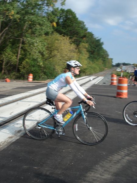 Warm down: Waited for Emily to finish, took some pics, got a medal, signed up for a massage, ate some food, chatted with a lady from Colorado, got a massage on legs & upper traps, waited for awards. I won a spinervals dvd! On my way back to my car, I saw someone who didn't fare so well - she was fine, but her bike was missing the front wheel, front spoke, 1 pedal, and 1 handlebar. Yikes. What limited your ability to perform faster: training more hills Event comments: Wow - this definitely is the best race ever - participants, volunteers, booths, massages, announcer, etc. It was awesome and it was a gorgeous day! It was great seeing Emily again, and wish I would've met the other BTers. Hopefully I'll meet them next time! Last updated: 2007-07-02 12:00 AM