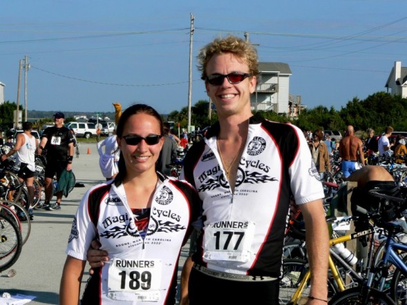 Banana, jitters, changing flat tire with 8 minutes til the first wave. I had to sprint to get to the starting line in my wetsuit and was actually the first person in the water that morning because I got to the line just as the gun went off and kept on running.