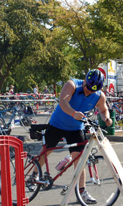 Comments: The wetsuit is really thick, so I had a hard time getting it off my heels. Once that was done everything else was fine. Put on socks and shoes, put water bottle on bike, put on sunglasses and helmet. Run with bike out of transition. What would you do differently?: Point my bike the other way so that I don't have to run around the rack to get it off. Hey, it was my first time so cut me a break!  Bike