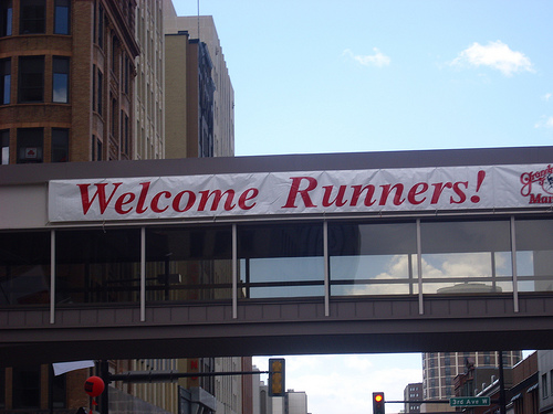 Comments: We started out running really strong. Kim had had some IT band issues coming up to the race, so she'd been cross training the last three weeks. But her doctor had okayed her running today, so we were confident that it would be good. Unfortunately it started to twinge at mile eight and I felt SO bad for her. There is nothing worse than training for months for a race, only to have your body betray you on race day! So we extended the walk breaks a bit hoping that she could keep running, but by mile ten it was too painful. She kept saying "You don't have to wait for me" but like I said, I wouldn't have left her. After all, the reason I signed up for Grandmas was to run with my sister! We had run the same race in September when we both traveled (with our awesome husbands) to run the Disneyland Half Marathon, but hadn't run together. Since both Roy and Mike have officially retired from marathons, we decided to sign up for Grandma's and run together. The guys declined to run the half marathon because they wanted to support us. (How altruistic of them. Ha!) My only concern was that I have lower back problems due to loose joints and some slight arthritis, and walking can cause problems. But I figured if it came to that I'd just run ahead a bit, then run back if I had to. I think I'm in good enough shape to handle some extra mileage and it would have been preferable to just leaving or the pain that walking might have caused. Fortunately after a few medical tent stops, we found one just after the halfway point with a massage therapist. He worked on her leg, and at first she thought it made it worse. But at mile 14 she decided to give it a go and found that she could run again. Yay! I don't think either of us wanted to admit out loud how LONG it would take us if we had to walk 16 miles. It sure gives me an even GREATER appreciation for people who walk marathons! That's no mean feat! We resumed 5:1s and continued that for most of the race, with a few longer walk breaks if the IT band commanded it. When she stopped to stretch, I would go ahead and run and then circle back. My back was just threatening to cause issues after about mile 16, so I was unsure about doing too much walking or stopping. That worked out well. At mile 23 Roy and Mike met us to run us in. Unfortunately Roy wasn't able to keep up due to his knee problems. But Mike was able to run in with us and it is SO nice to have someone else to distract you at that point. I know we both REALLY appreciated it! WE also appreciated that they tried valiantly to get to us many places along the route. We did see them about mile 12 or so, but unfortunately they weren't able to get to us in the other areas. Both of them had made signs too, which was awesome. The last two miles take you into Duluth and then into Canal Park. As always, I found myself getting emotional at the end. Every marathon is special, but running it with family made it even moreso. I was so thankful for this and for the fact that we had this gorgeous memorable day together. What would you do differently?: Nothing, really. I was feeling really good for most of the marathon. ![]() Post race