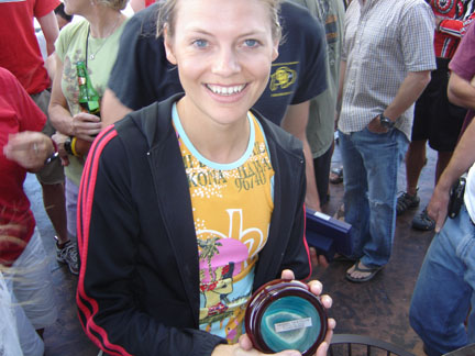 Warm down: After crossing I found my wife to get an update on how her race went. I told her that she was really in the front half of all the women Sprint swimmers but she kept insisting she was at the back. She said the bike was hard with the climbing and winds and the run was good, but had no idea of her times as she doesn't wear a watch. We had a beer with our friends and i wandered over to check the results. I found Jamie's name and scrolled down....and she finished 3rd in her AG 30-34 out of 13 women!!!!!! She missed 2nd by 5 SECONDS!!!!! I was so excited, i went and told her and she wouldn't believe me, thought it was an error, and then said there were probably only 3 girls in the AG! It wasn't until they announced her name at her first awards ceremony that she actually believed it. I am so proud of her. As far as I am concerned, you know that line in "Butch Cassidy and the Sundance Kid" where they keep saying "Who are those guy's?" about the posse on their tail? Well this race was staked! The top 4 men were all Pro's from Boulder and I also finished a respectable 2min behind Sarah Groff, pro and US National Team memeber. The athlete I usually compare myself with is a local guy named Patric Bless who last year I would often finish second to, he went 9:18 in Kona this year, so he's super fast. At Olympics i am usually a few min. behind him and he finished 6th in 2:10:16, so I was right where I should be. This was a very satisfying result and it was great to kick off the season well. I am in a new Ag this year and have never finished off of the podium in any triathlon I have done with the exception of Kona. Boston Marathon is next! What limited your ability to perform faster: Bike fitness is down from last year. Event comments: Went over to the Javellina Cantina for the awards ceremony had a Corona with my triathlete wife! Last updated: 2008-03-11 12:00 AM