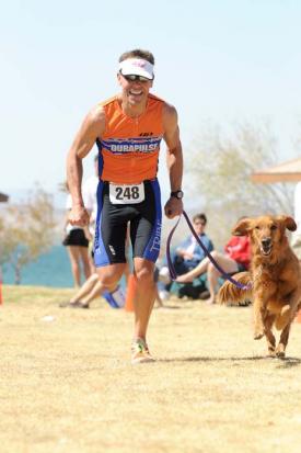 Comments: The run course was changed from last year and T2 times were included in everyone's run splits, but I didn't even get a split time here either. I'm estimating my time based on the overall math and my HR effort, which was a slightly sub 6:30 effort normally. The run course now had us running through a long section of deep, loose sand along the canal on some dunes. It cam at the every start and very end of the run and was brutal. It was so slow and had to be 400 yards round trip and severely slowed the run pace for everyone. I felt so so for the first mile but really found a great rhythm around mile 2. My HR was parked at 163-164, which with all my recent training felt great. I didn't feel like pushing it up more, although in retrospect I probably should have, but I was cruising, feeling good, and passing the college kids and that made me happy. :) As I came towards the finish, my wife was there with our two dogs and she gave me our speedy dog Dexter's leash and I ran across the line with him! The pics are great, I'll post them when I get it! What would you do differently?: Run a bit faster, I clocked in with 6:05's last year by pushing more on the run and would have been closer to that had it not been for the beach section of the run. It was like XTERRA! ![]() Post race