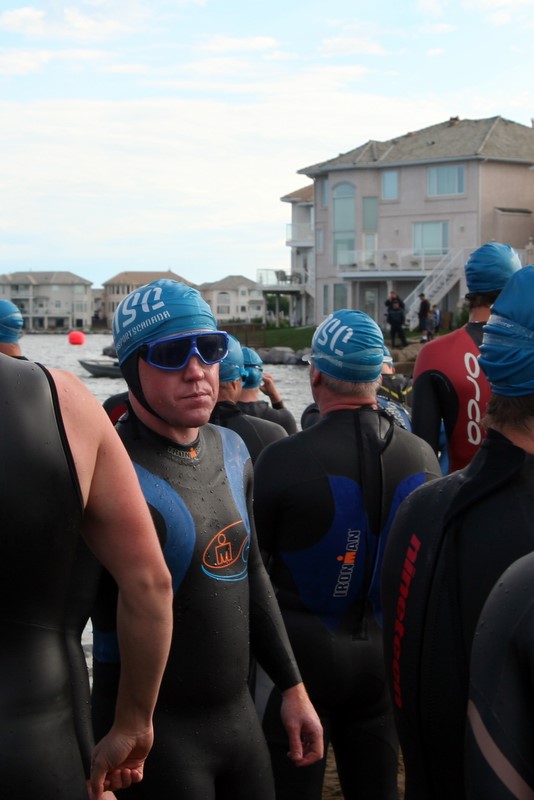 Swam around a bit to get the water in the suit and get rid of any "brr" shocks. I had my neo cap on as well as the swim cap so no heat loss there. Since this was the first Oly this race has held, it wasn't crowded - 90 olys. Perfect for a newb.