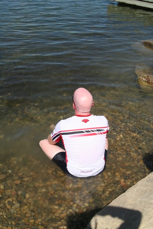 Warm down: Cooled my head and wrists in the lake then decided to just get in. What limited your ability to perform faster: I'd love to say my knee, but I honestly can't say I noticed it at all during the race. Not even a sliver. Driving home on the other hand, that sucked. Event comments: No hot lunch, but lots of munchies. I hate how the race director just randomly points at a name on the registration list for the draws - use a hat with numbers, a random number generator on a laptop or a freaking set of D&D dice at least. Excellent prices though (Wetsuits, aerobars, food etc) Last updated: 2008-04-03 12:00 AM