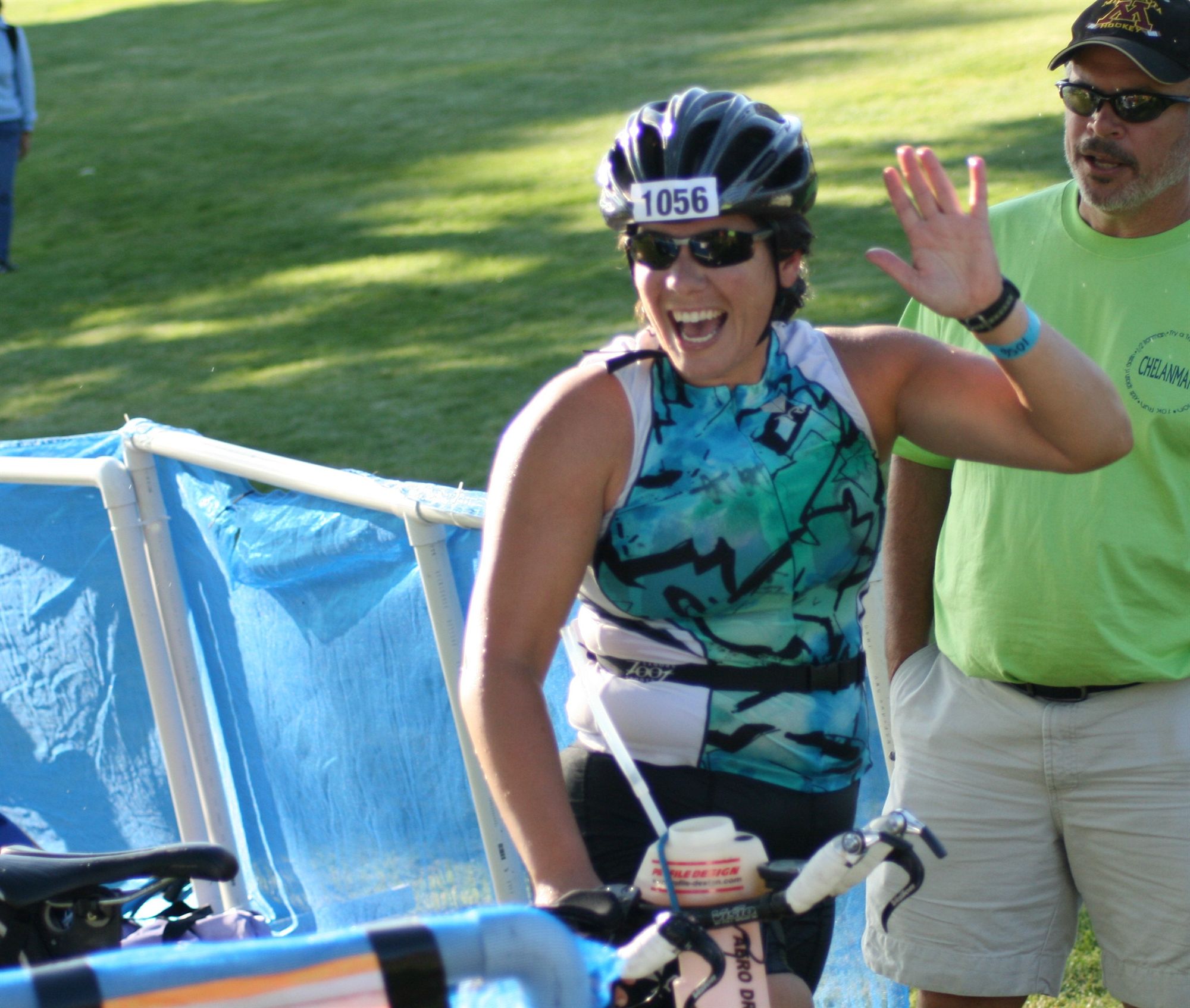 Comments: Wow, spectacular course! It was hot. And steep. But beautiful. The out-and-back at the beginning went along Lake Chelan and had some rolling hills. Nothing too steep, but enough to get the legs warmed up. After a little over 30 miles, the course made a loop down Hwy 97 and then back around through Navarre Coulee. The big hills were here. And while they were about as challenging as I expected them to be, my body handled them better than I thought. Woohoo! Perhaps I'll turn into a climber one day after all. Oh, and I peed on the bike. Everyone was very proud of me. And my friend Jon owes me 2 beers. What would you do differently?: Train more hills. Lose this ghetto booty I can't seem to get rid of. The big thing I did RIGHT? Nutrition. Spot On! ![]() Transition 2