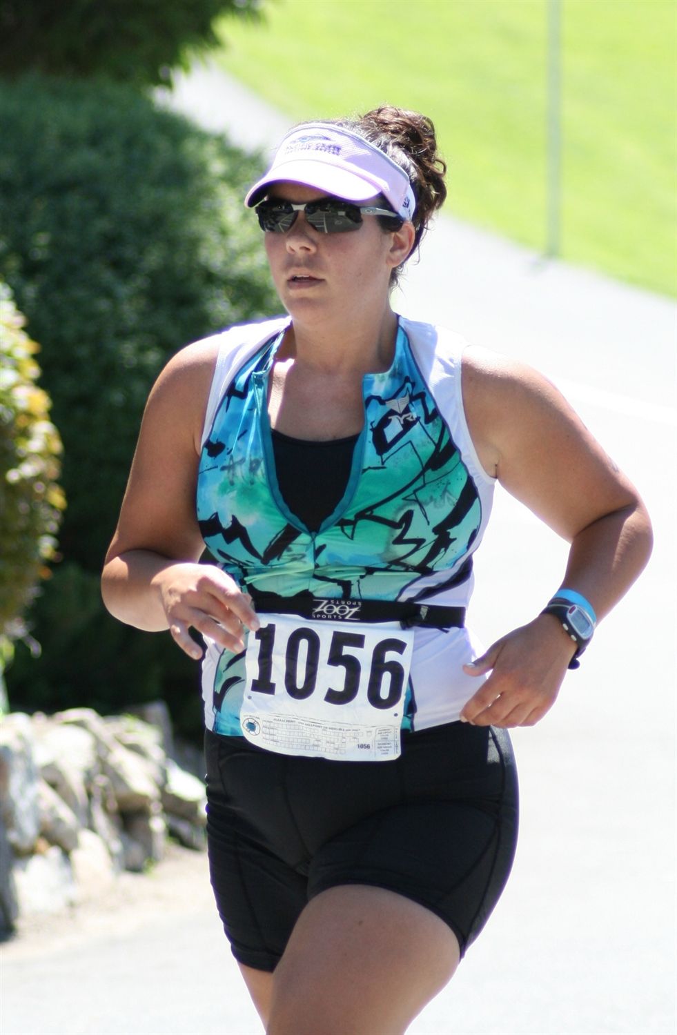 Comments: I was able to take my feet out of my shoes before the dismount. It went much quicker than it has in the past. My dismount still needs some work though. We had to run down the same steep, wet, grassy hill back into transition. That wasn't fun on tired legs. But I didn't fall. I wonder if other people did that day? When I racked my bike I saw that I was completely surrounded by cheering Headhunters! They had all just finished the Oly distance and were getting their stuff. It was so cool to have tons of friends around me as I headed out for the run. What would you do differently?: Nothing. My T2 was slower than usual (only good enough for 26th overall), but you know, I had just rode 56 miles of hills. I feel lucky to have even MADE it to transition! ![]() Run