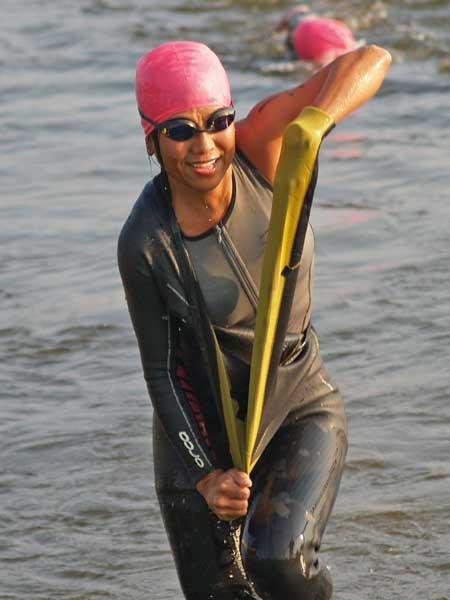 The race was wetsuit legal. I had not worn my wetsuit in months...so I put it on, was glad it still actually fit, and took a quick swim.