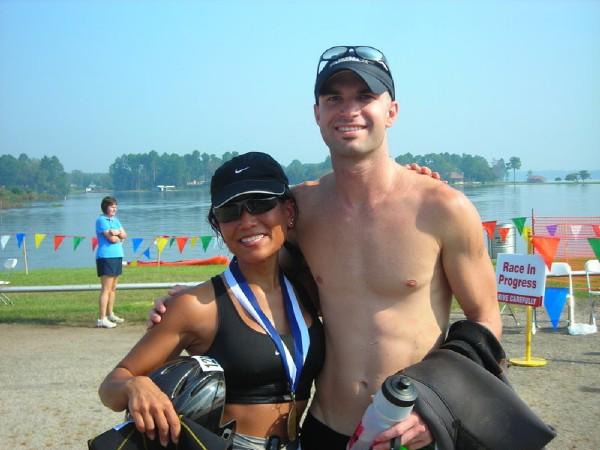 Warm down: I stretched out...and walked around. I was in charge of the door prizes at this race, so I had to take of that..and then I enjoyed some of the YUMMY food. What limited your ability to perform faster: No taper. But hey - Longhorn was 2 weeks away... Event comments: I was the sixth overall female...four of the six in front of me I knew. I won my AG...which suprised me - I thought for sure my friend that got 2nd in my AG would have gotten it. This was a great race. Of course, I am very biased since it was through my tri club. There were about 140 racers, so it was a small race, but such a fun one! I remembered to get my chip...no bike wrecks..no issues on the swim, and I did ALMOST fall once on the run, but I never actually fell...wow...this was a great race for me!!! See the pics below...William (triritter) got 2nd OA! He did great as well. Like I said...fun race...I will of course do this one again next year... Last updated: 2008-05-19 12:00 AM