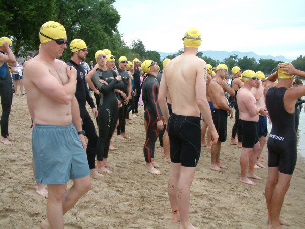 Didn't get much sleep, so we tried to get out to the race a little later than normal, which hosed me for getting ready in the Transition Area. They closed it pretty early and I was all over the place trying to get stuff ready. Not good.
