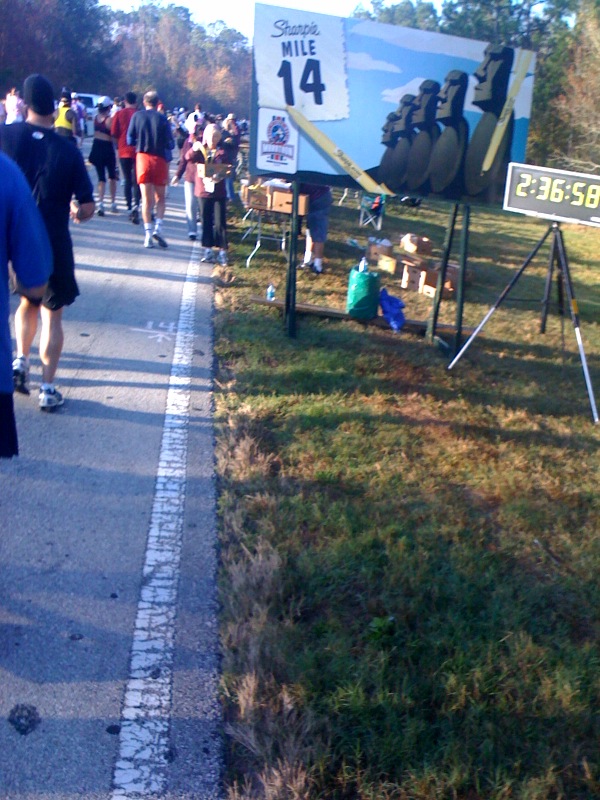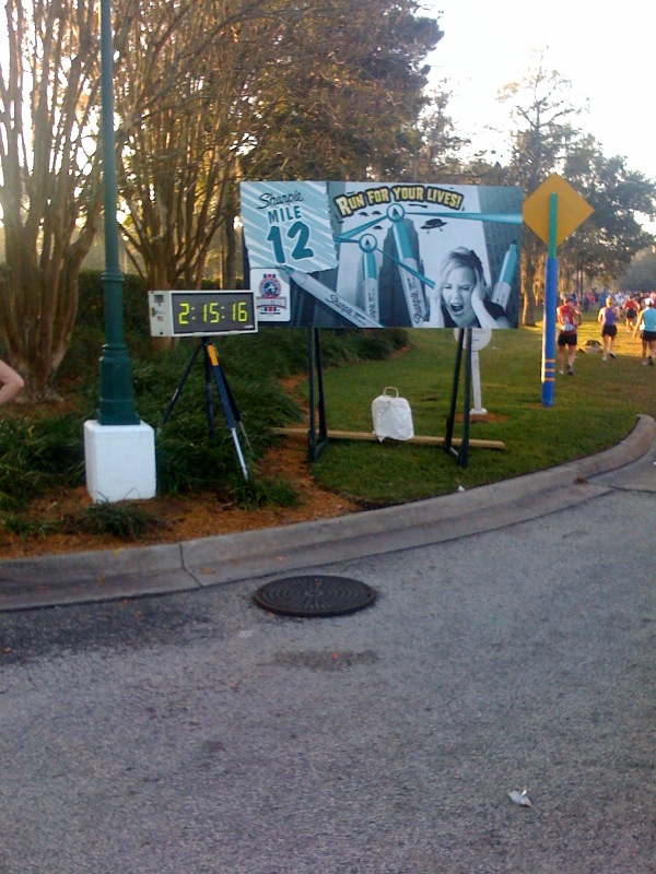 Comments: Corral starts and the faster you are the lower the corral letter. I started out at a slower pace than normal but I had a negative split strategy in mind. Who knew I'd keep a pretty consistent pace. The run/walk strategy worked out fabulously although I didn't employ it until mile 10 or so. I tried to maintain the pace I was going because I knew it was a long challenging race. I also took along my cell phone and a disposable camera so I could stop and take photos of the mile markers, Disney cast characters and other memorable points ~ like that of my son holding his "Go Dad" sign he made at the expo. What would you do differently?: Aside from getting stronger and more endurance run training, not much. This race is supposed to be fun with all of the Disney Cast & Characters along the course and for pictures and memories, of which, I enjoyed to the fullest. Lots of photos are coming. My race nutrition was spot on! Advocare products were the core and I also used Rolaids & Sport Beans. I might have brought along an Arginen Extreme or muscle fuel for a late race booster but I didn't do that in training so I didn't want to jeopardize my race for that. The only other thing I could do for next time is to employ the walk/run strategy earlier. ![]() Post race