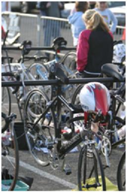 Carry stuff into transition area, arrange, re-arrange, wonder what I am forgetting, walk out, walk back in, realize I should have got there sooner, go back to car and grab pre-race drink, wait in line for bathroom, wonder if I ate enough, wonder why I am hungry, wonder where I left my keys and my money clip. Grab wetsuit and head to water.