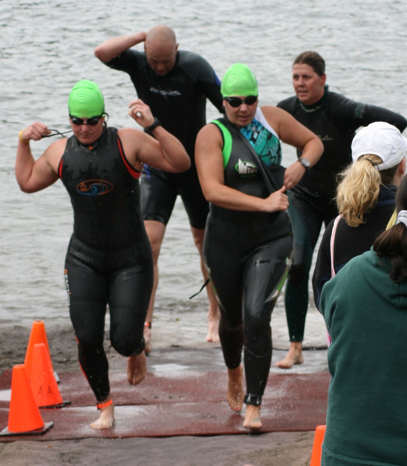 Comments: During the deep-water start, a lot of people were crowding towards the back and to the sides, so I said "hey, why not?" and swam up to the front inside spot to start. Suprisingly, it was not chaotic at all. The downside is that there wasn't anyone to draft off of until people passed me. I got a little off-course in the first 200 meters, but once I sighted more often I didn't have any more issues. I had trouble finding someone to draft off, so I hopped from feet to feet until I found a pair that worked. I stayed on him from the second to the third bouy, and then passed him on the sprint into the finish. I probably could have gone harder on the swim, but I hate coming into T1 with out-of-control breathing. I still knocked almost 3 minutes off of my time from last year, so I'm pretty pleased. I even managed to beat my unofficial coach out of the water -- only by about a minute, but still! I tied for first in my division coming out of the water, and was in the top 23% overall. What would you do differently?: Sight more often from the beginning. Find faster tootsies to draft off of. ![]() Transition 1