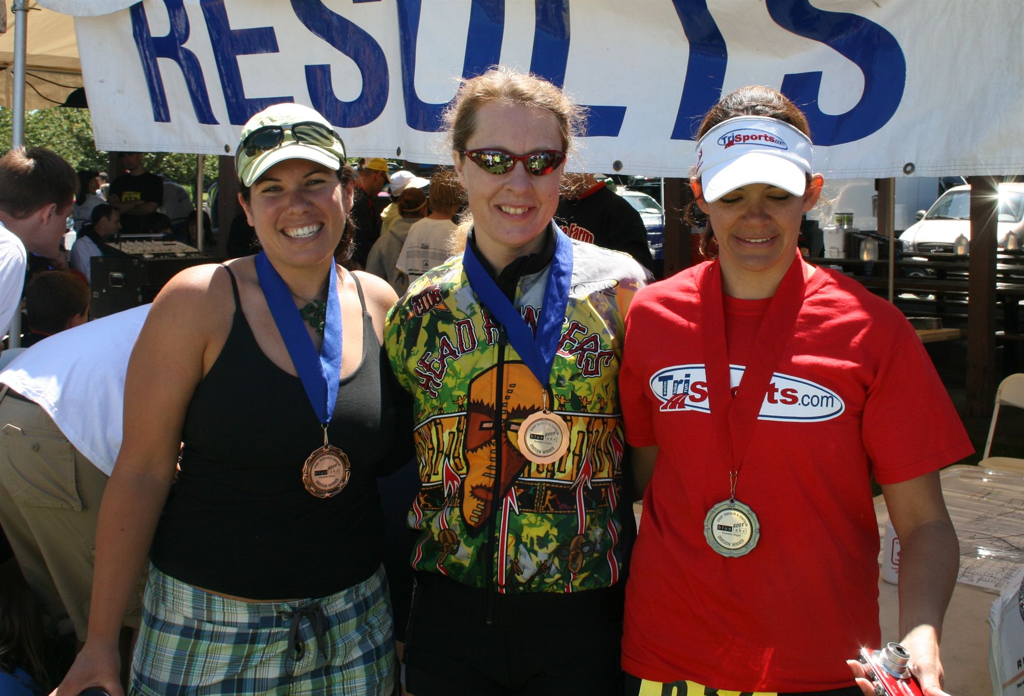 Warm down: Walked around, took photos with Headhunters, waited at the finish line for other friends. What limited your ability to perform faster: Smokin' PR for me -- I'm happy as can be! Event comments: This was my first medal ever! When I found out that I had placed, not a single thing could knock me off Cloud 9. I'm still there, actually. :-) Last year I did this same event as my very first triathlon. I finished happy, but hurting. One solid year of training later and I knocked 12 minutes off my time. In a sprint distance! This was an awesome confidence booster and reinforced that I've chosen the right fitness path for myself. Even better, my sweetie-pie was there to watch it all take place, and he couldn't have been prouder. The course itself is flat and not very difficult, but it is a great first-time event and/or season opener. I think I'll be doing this each year so I can gauge my progress. Last updated: 2008-06-09 12:00 AM