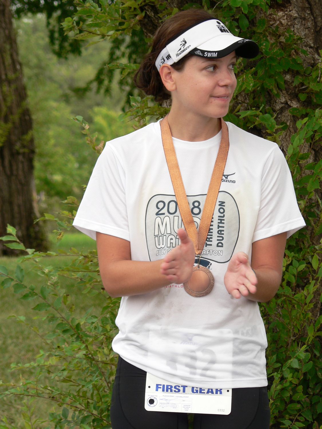 Warm down: I had really left it all out there. I saw my Mom but I couldn't say anything - I doubled over to breathe and just stayed there for a bit. Finally I calmed down and got some Life Water (too sweet!) and some real water. Talked to all the guys I knew out there while waiting (FOREVER) for the awards ceremony. Saw from the posted results I had come in 3rd in my age group! So that determination on the run was the difference between getting hardware and not. I'm pretty proud of myself for pushing so hard and it being the difference. Good girl. Eric placed 3rd in his age group, and Jason did too! We all 'podium'd' which was pretty cool. Wish Tom would have been there because I bet he would have placed too. Oh I also made a new friend... the girl who blew past me running up to T1 - I was congratulating her on winning our age group and we started talking. She's new to the area and did Florida 70.3 - is thinking about the Half Redman. We will probably train together this summer, yay! I have a hard time sometimes making friends (especially girls), so I'm pretty excited about meeting this girl and exchanging phone numbers. What limited your ability to perform faster: Mey-ley on the swim start. High heart rate on the run. Event comments: This is a young race (3rd year I think) and is put on by the local Tri Club - made up of a bunch of GREAT people! There are some things they could do a little better, but all in all they put on an awesome day. This is a flat, fast course and really fun! Last updated: 2008-06-23 12:00 AM