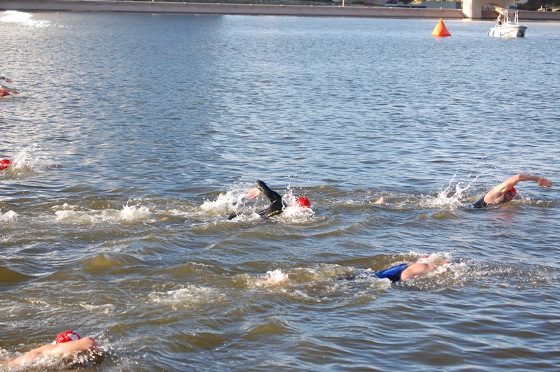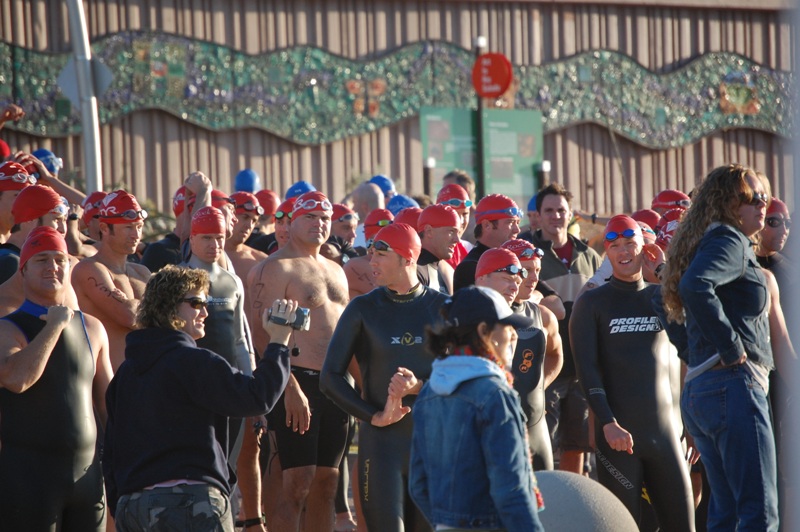 Besides riding the bike to transition and then being rushed to to setup my transition area, that is all the warmup I had. I did a tiny 30 second swim when I got in the water.