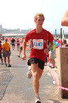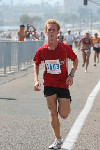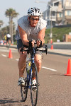 Comments: Ryan disappeared down the boardwalk, and Matt changed out of his bike shoes. Then Matt and I made our way out the back of the transition area and up the steps to Carlsbad Blvd. Once up above the beach area, we could see that they were already taking the swim course apart. We made a quick dash across the road to the east side and headed north to get as far up to course as we could to meet our runner as soon as possible. We ran into him sooner than I'd expected. Matt and I had only gotten about half a block from Tamerack Ave when he flew by. I figured he was just short of 1.5 miles into the course, and although I didn't get a split time as he started his leg, I estimated that he was close to 8 minutes by now. He was passing the other runners like they were standing still. People along the route were cheering for him. Matt and I continued northward toward the finish arch, as we wanted to get a good spot to see our teammate come in. The way the finish area was set up, was such that the runners would come through a chute, give up their timing chip, and then proceed to the post race food area which was cordoned off from the general public. So that's what we were missing, the food. Matt and I made our way through security, who checked our body markings, and proceeded to sample the goodies; strawberries supplemented the usual banana pieces and bagel chunks. Not the variety of most triathlon spreads, but there was plenty of it, and lots of volunteers to serve you. The big surprise was that there were bags of ice all around (I guess incase you needed to ice your sore parts -there have been plenty of races where I've finished injured and ice would sure have been nice). But the best surprise was that there were lots of coolers filled with ice, keeping the bottled water nice and cold. Why can't all triathlons do this? Nothing like a warm bottle of water after you've just dehydrated yourself over the past hour or more. Tasty. Anyway, we continued south through the food area to be on the west side of the finish line, but when we got there, the view of anyone finishing was completely obscured by the various tents for the timing equipment, first aid, etc. And there was a surly volunteer who looked like he was long since tired of telling people that you can't come through here. So we worked our way back north through the crowd, back through the food area, out the back exit and then headed southward back toward the finish line. Just before we got there, I spotted Ryan. He had just crossed the finish line and was walking up the chute. I didn't get a split on him, and he forgot to stop his watch as he finished, but he did get his time as he crossed the 3 mile mark at 16:16. A couple days later, when the official results were posted, we found out that he'd run a 16:49 for the full 5K. That's about 5:25 per mile pace. His time was good for the second fastest run time of the day, behind a 16:35 by one the guys in the Elite Male division. The third fastest time was 17:00. Yes, we did indeed bring our own ringer. So, even though we now knew he had turned in a great run time, we still had no idea how the relay team had done. Ryan told us that two other teams (with the other ringers) had sent their runners off way ahead of him, so unless their runner's abilities were considerably behind that of their swimmers and cyclists, there was no realistic hope that even his fast run caught up with them. When the preliminary results were posted, we found out that we'd come in third in the Male Relay Division, some 5 1/2 minutes behind second place, and almost 12 minutes behind first. At least we beat 4th place by almost 2 minutes, although one of the coed teams was just 13 seconds behind us. Ryan must have only passed them in the final 100 yards. What would you do differently?: I can't see how changing anything here could have impacted the final results of the run, or even the triathlon as a whole. However, from a spectator's point of view, we should have checked out the finish area before hand and determined where the best place was to watch the end of the race. ![]() Post race